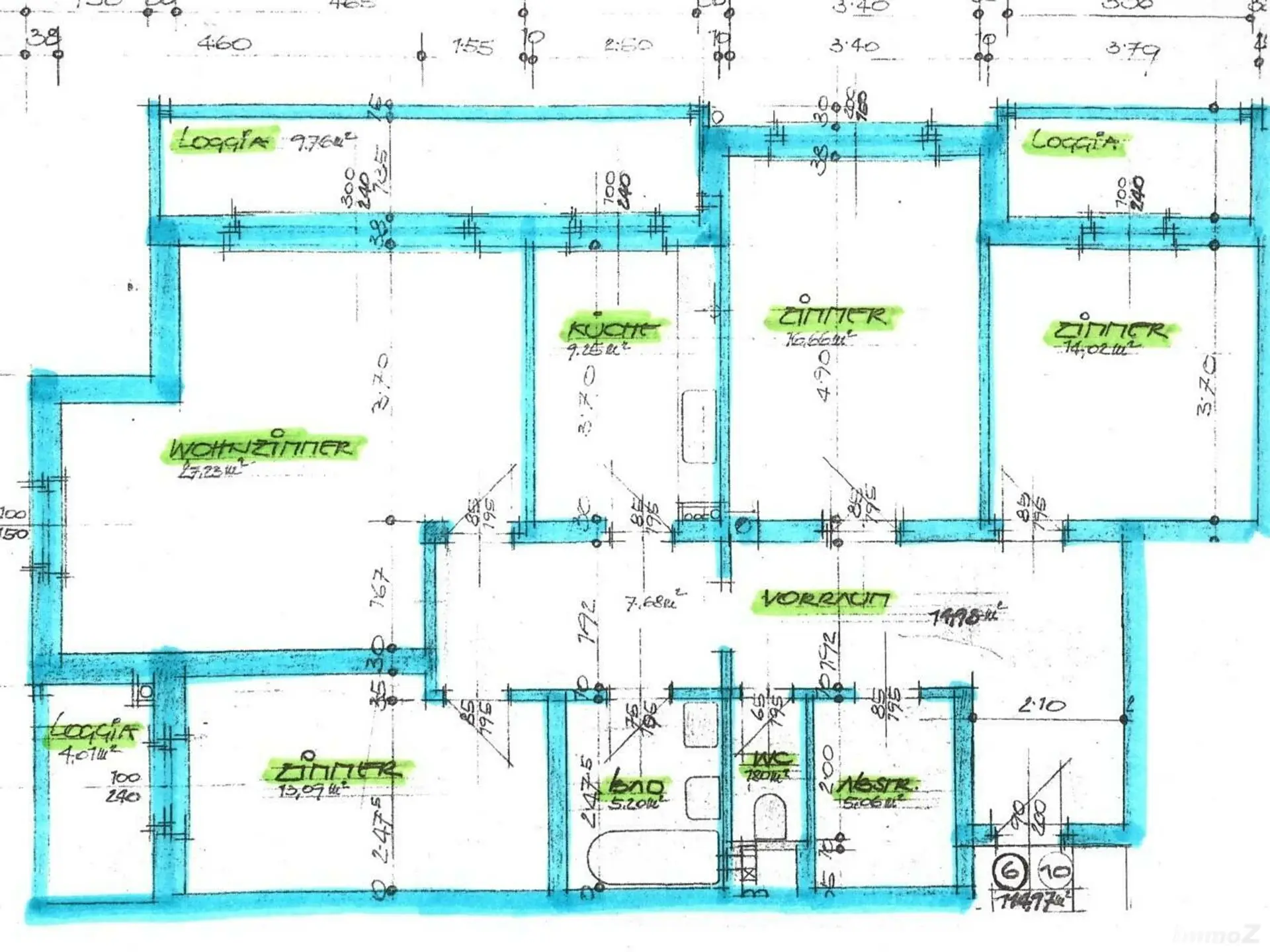 Geräumiges Wohnzimmer mit Loggia, Küche mit genügend Raum für einen Eßplatz und Zugang zur Loggia, Badezimmer mit Wanne und Dusche, WC separat, Abstellraum, 3 weitere Zimmer - zweí davon ebenfalls mit Loggia.