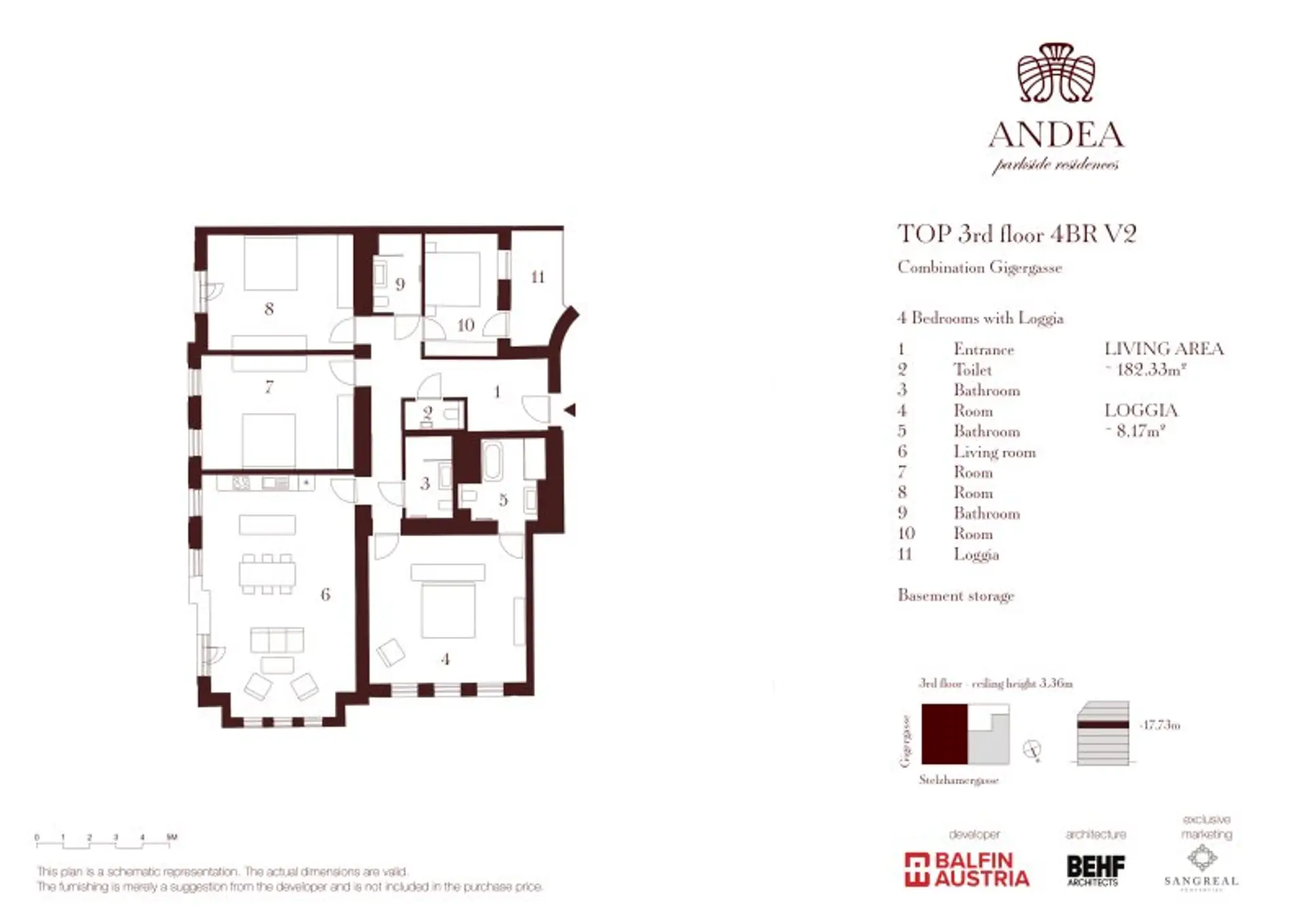 Willkommen in einer außergewöhnlichen Wohnung mit Großzügigkeit und Eleganz, gelegen im 3. Obergeschoss des historischen Projekts ANDEA – Parkside Residences. Diese exklusive Wohneinheit erstreckt sich über rund 182 m² Wohnfläche und beeindruckt mit einer Raumhöhe von ca. 3,36 Metern, die den klassischen Wiener Altbaucharme eindrucksvoll zur Geltung bringt. Ein Refugium für anspruchsvolle Bewohnerinnen und Bewohner, die urbanen Luxus, Großzügigkeit und historische Architektur zu schätzen wissen.