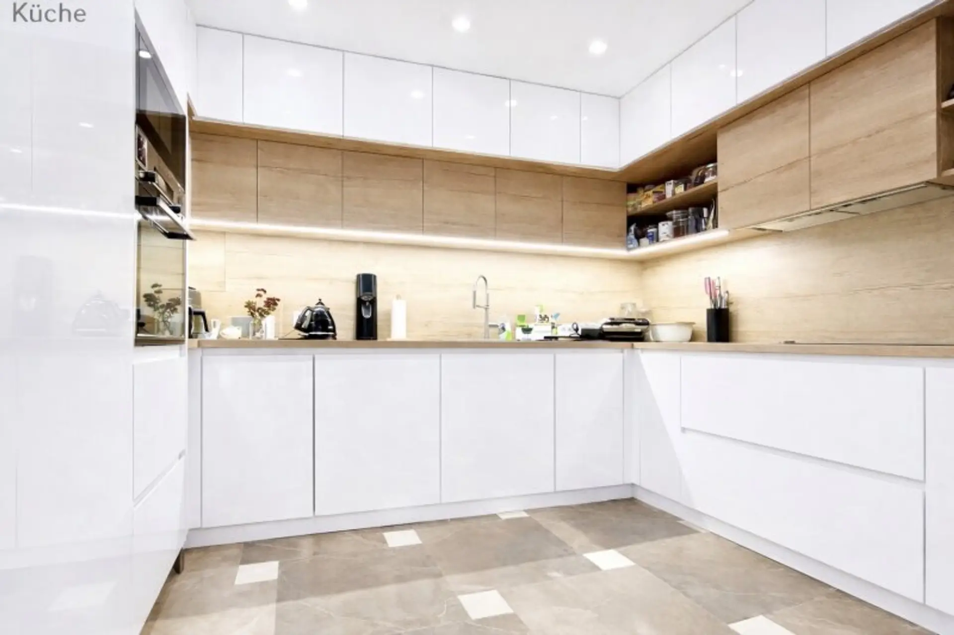 Die separate, moderne Tischlerküche ist hochwertig ausgestattet und bietet dank Fußbodenheizung ein besonders angenehmes Raumklima sowie ausreichend Platz für kulinarische Entfaltung.