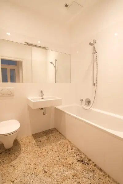 Alle Wohn,- Schlaf,- und Nebenräume sind mit hochwertigem Parkettböden, sowie die Sanitärbereiche sind mit Natursteinböden und einer Fußbodenheizung ausgestattet.