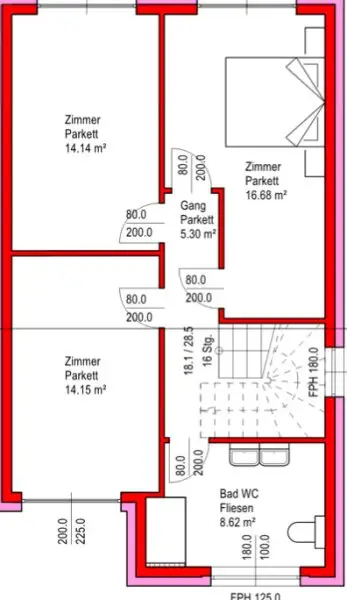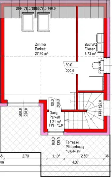 * Zimmer 4 ca. 28 m² mit Terrassenzugang