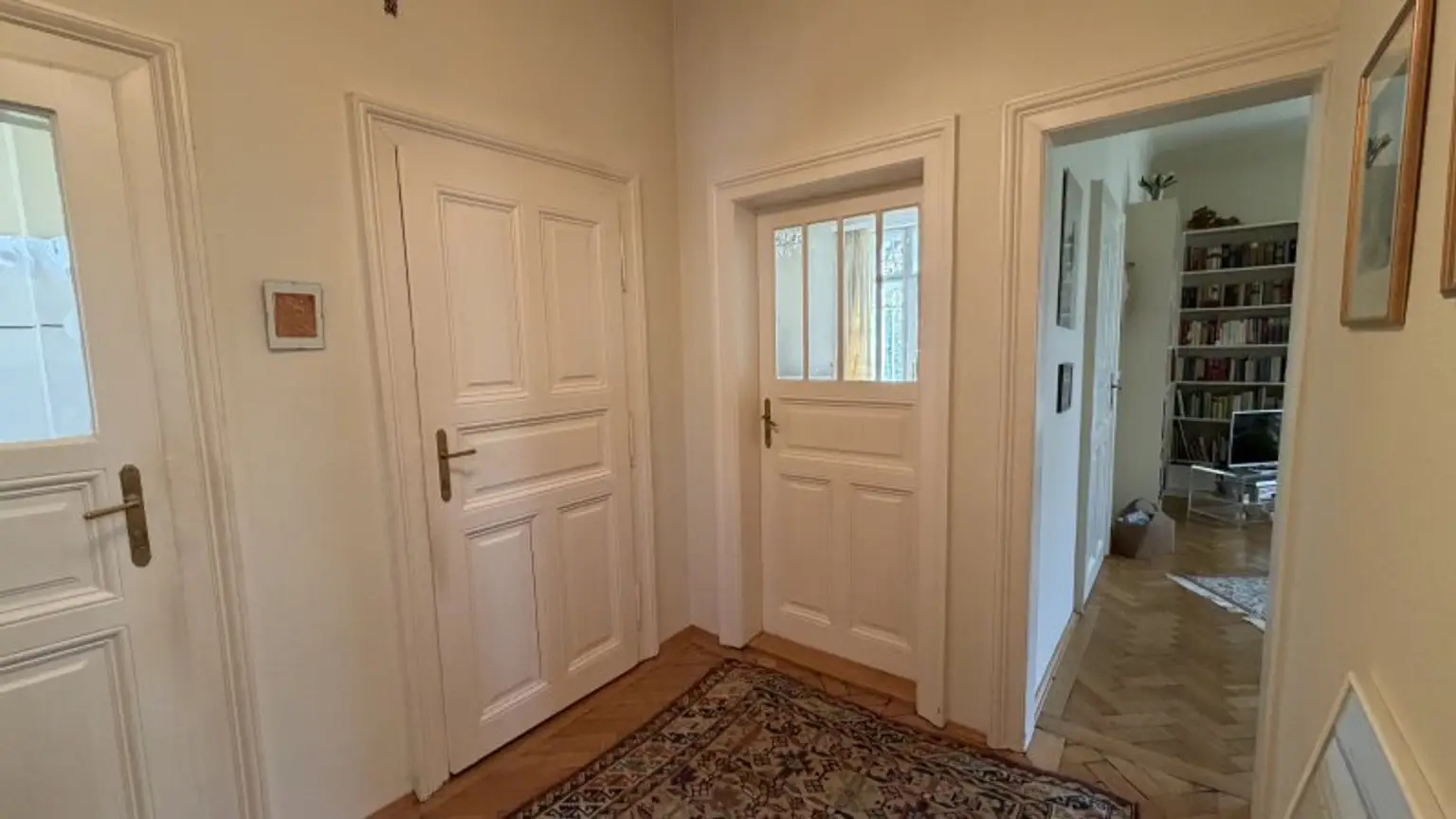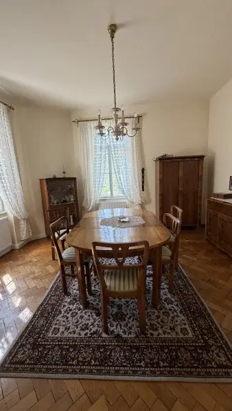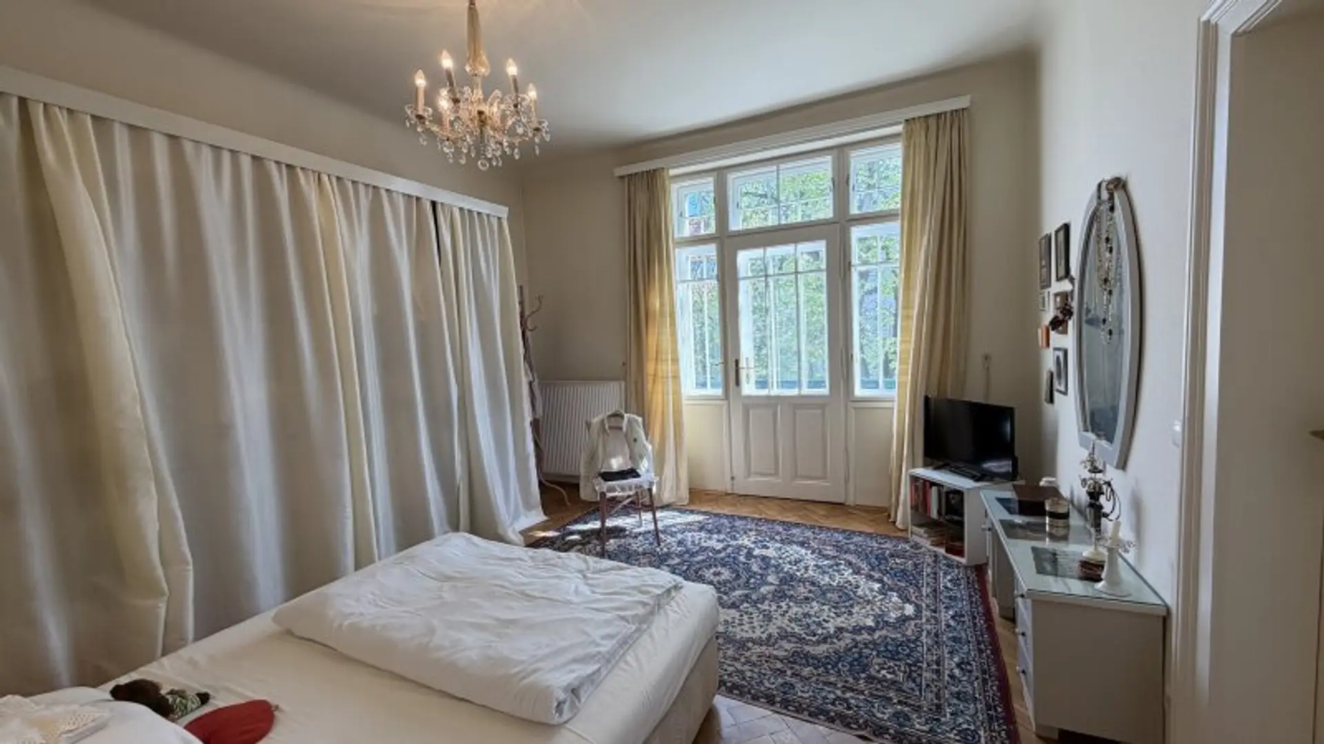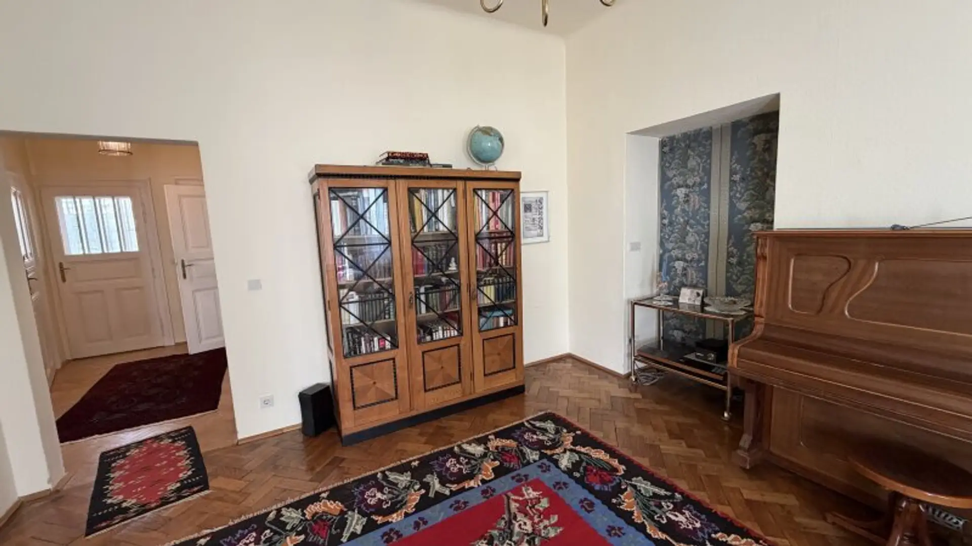 Der Außenbereich unterstreicht den repräsentativen Charakter der Liegenschaft: Vorgärten und ein historischer Zaun schaffen eine stilvolle Distanz zur Straße, während auf der Rückseite ein begrünter Garten mit gewachsenem Baumbestand, Freiflächen und einem dezent integrierten Pool zusätzlichen Freiraum bietet.