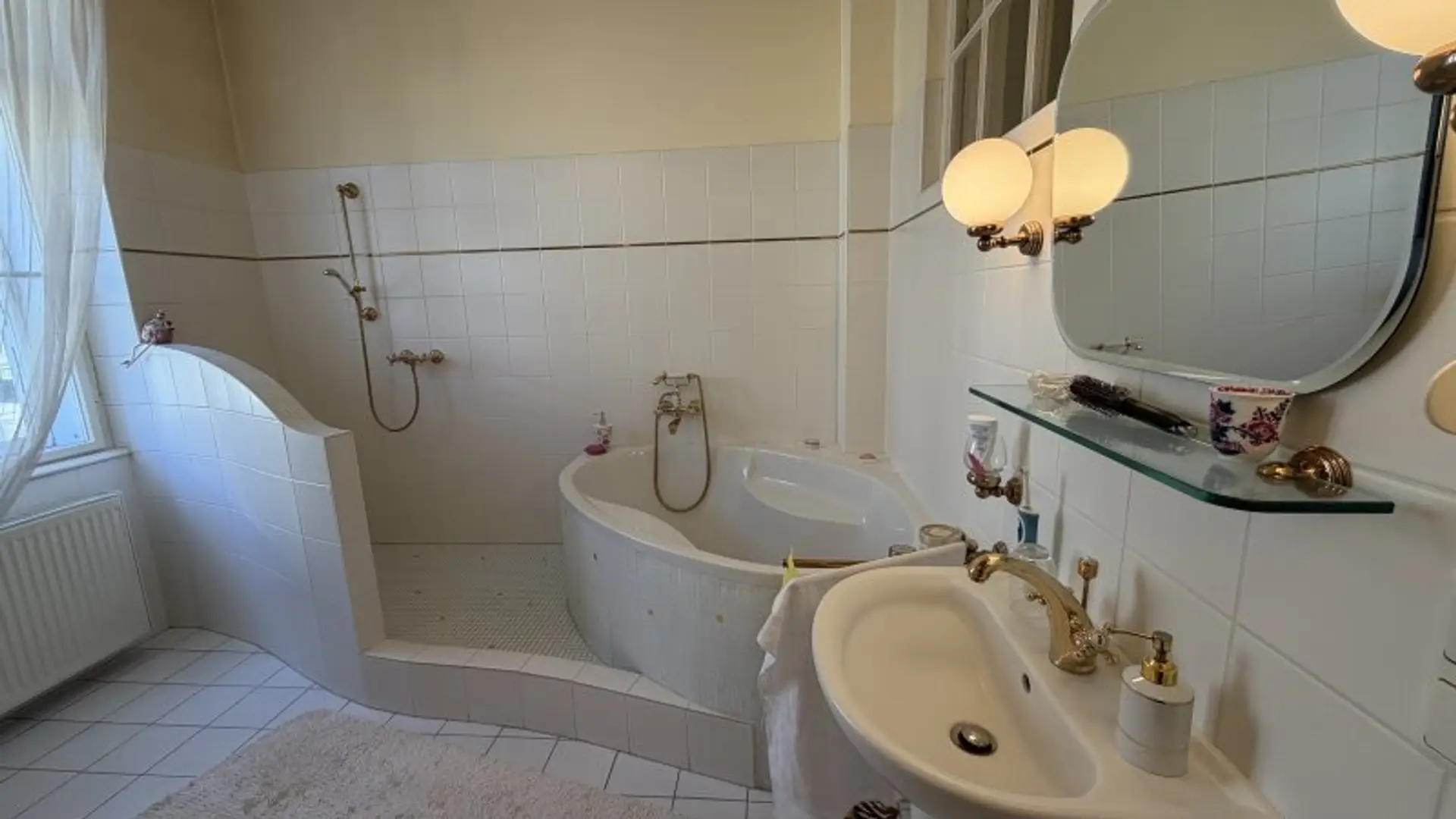 Die Räume der Villa präsentieren sich hell und einladend. Die Bodenbeläge variieren zwischen stilvollem Parkett und pflegeleichten Fliesen. Beheizt wird mittels Gastherme, während die Warmwasserversorgung durch mehrere Boiler sichergestellt wird.