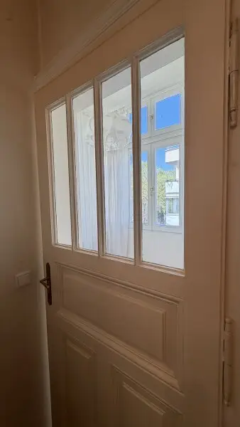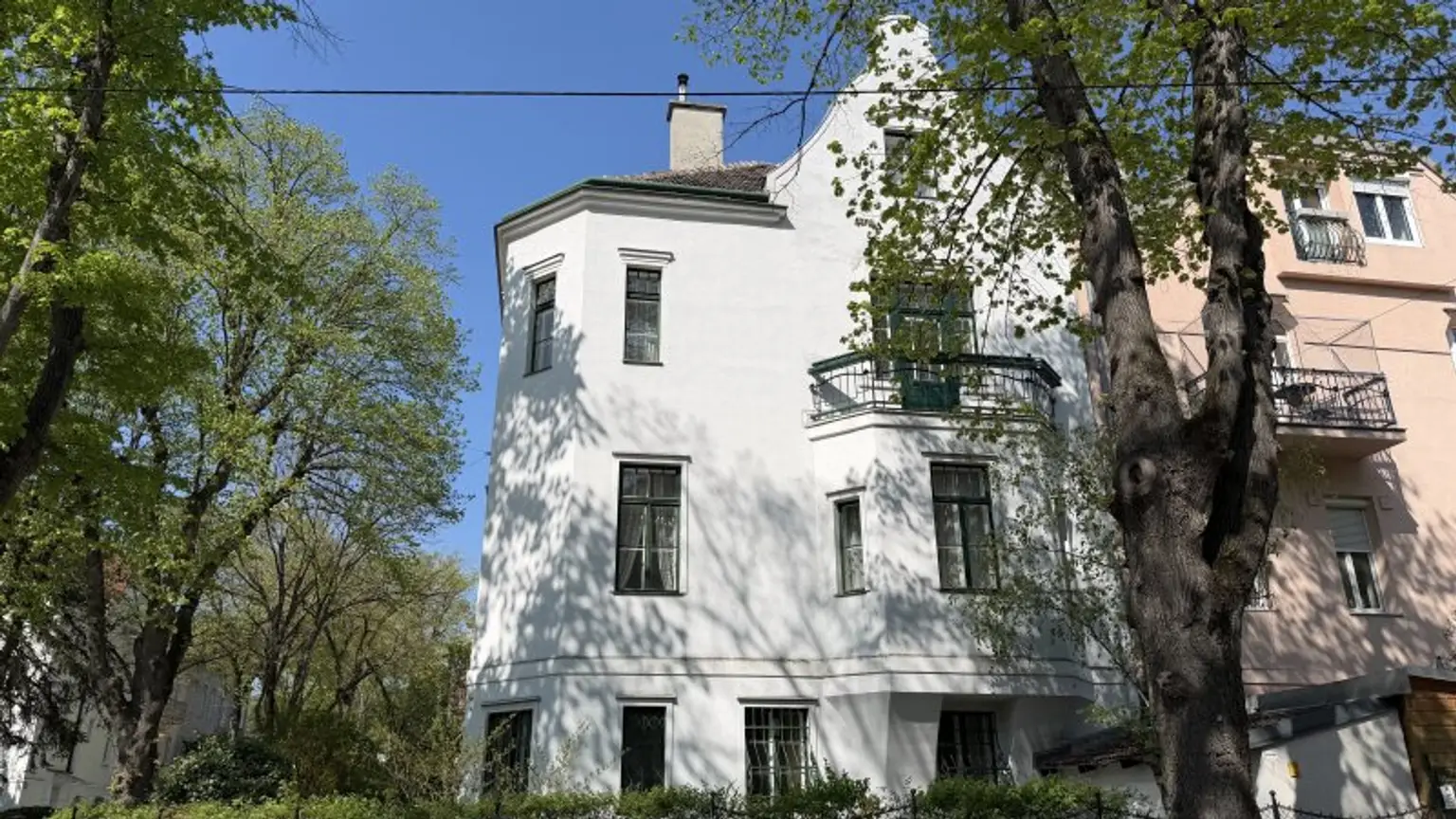 Äußerlich besticht die weiß verputzte Jugendstilvilla durch ihre klare Eleganz: Dezente Fensterrahmungen, gesimsartige Überdachungen und original erhaltene, grün gefasste Kastenfenster prägen ihr Erscheinungsbild. Ein Erker mit darüberliegendem Balkon sowie eine geschwungene Dachgaube setzen architektonische Akzente.