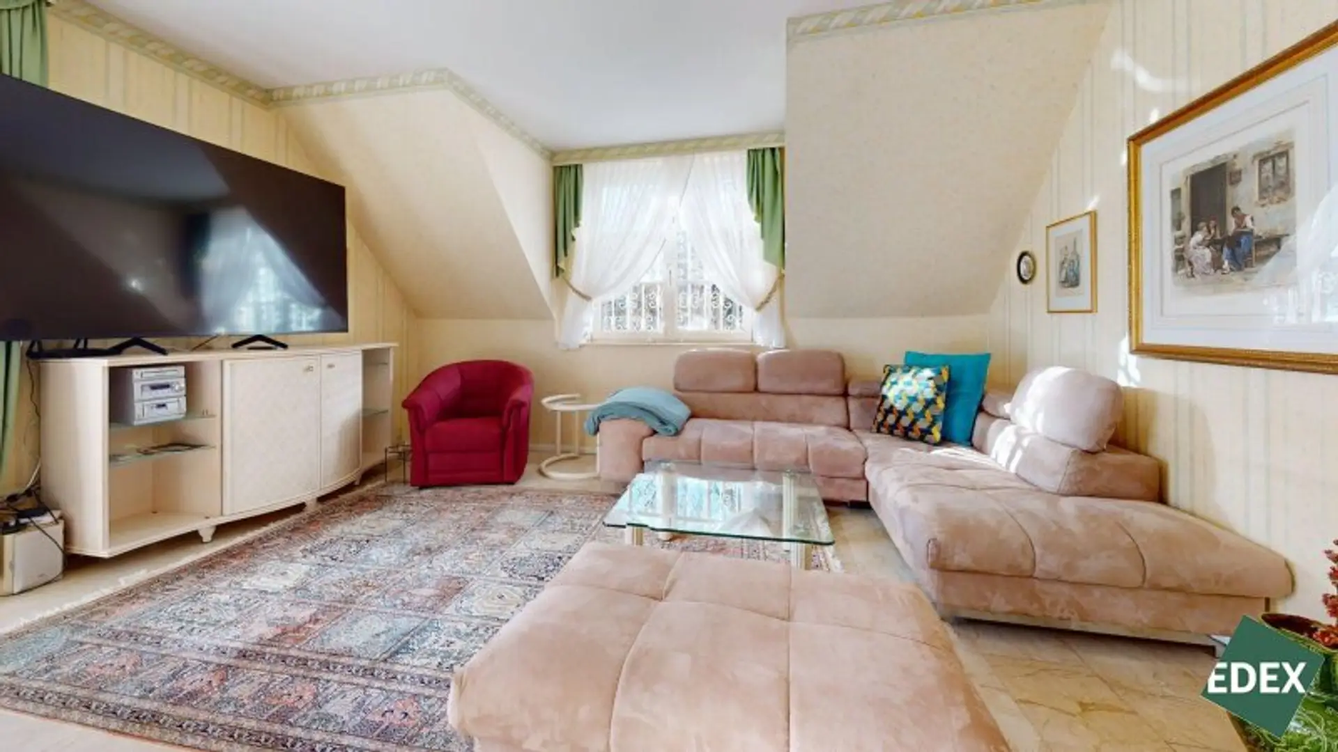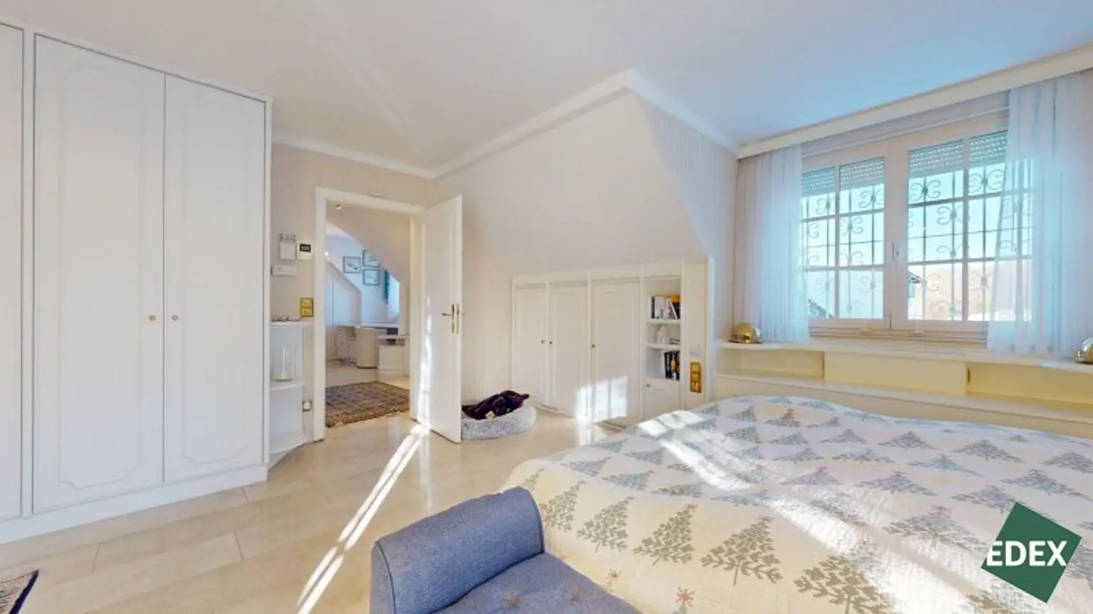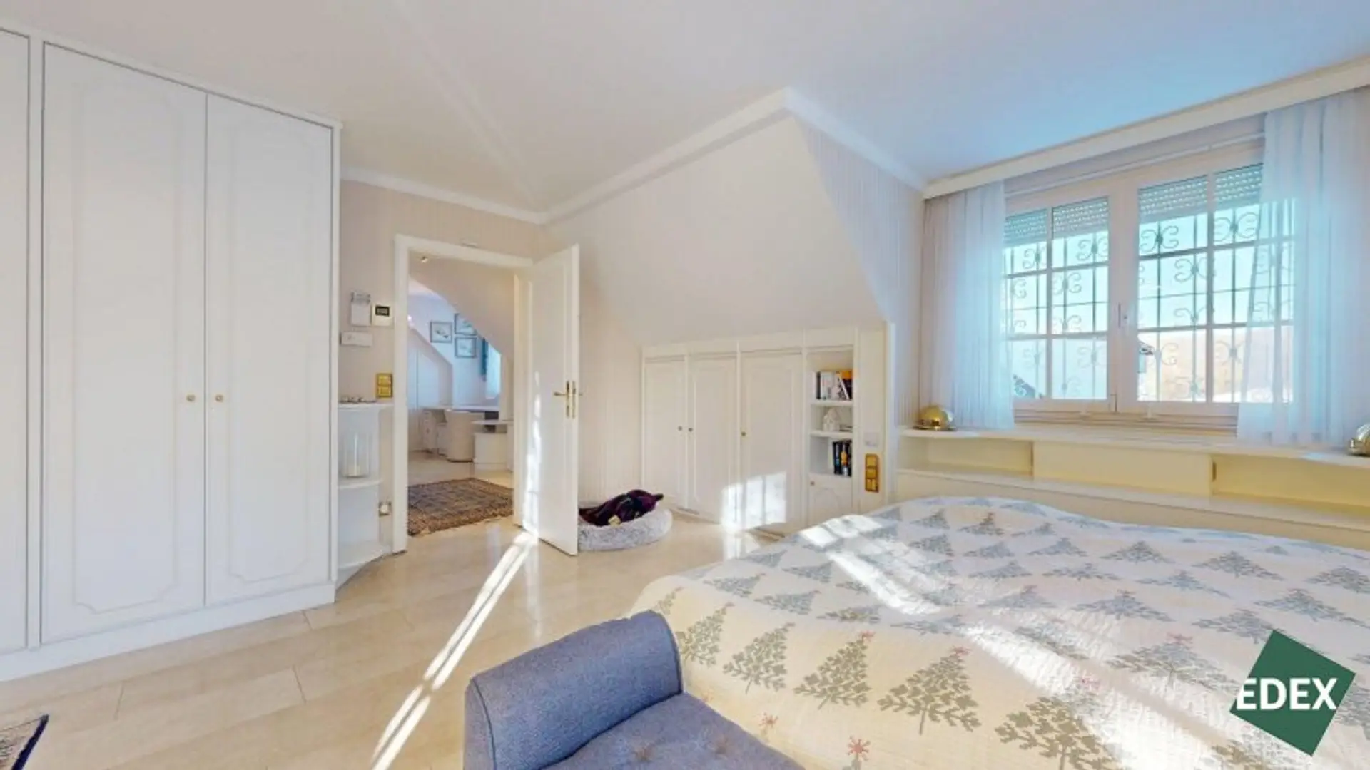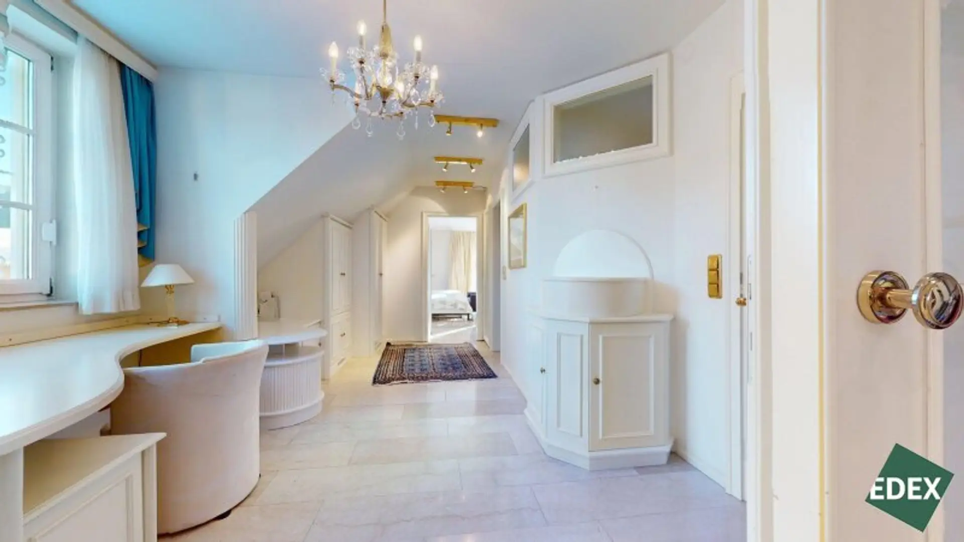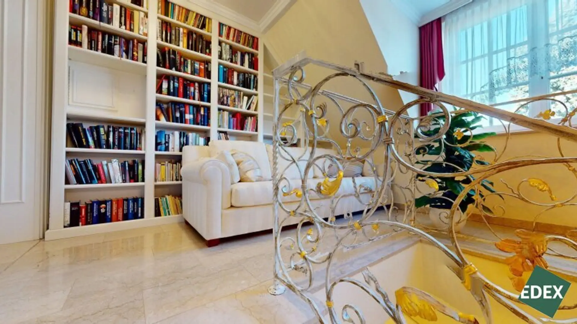 Über die elegante Treppe gelangt man in eine offene Galerie. Das Obergeschoss umfasst: