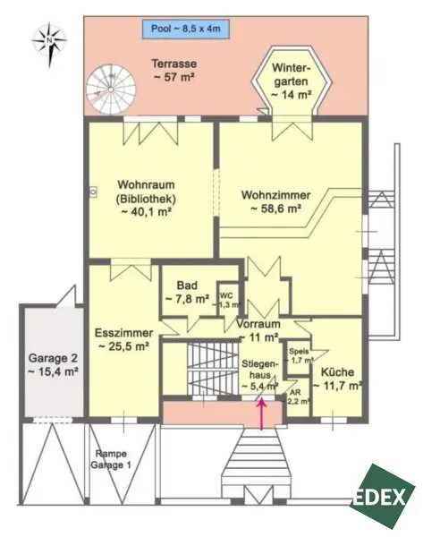 Pool ca. 8,5 m x 4 m mit Außendusche
