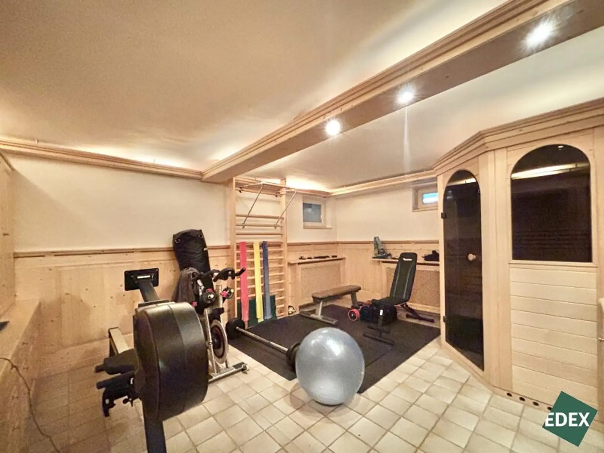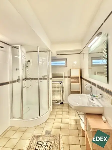 Im beheizten Keller erwartet Sie ein großzügiger Wellnessbereich mit Sauna, Dusche und WC sowie Fitnessgeräten. Ein gemütliches Kellerstüberl, diverse Lagerräume und der Raum mit dem Gaskessel ergänzen das Untergeschoss. Ein direkter Ausgang führt in den Garten und zur Garage – komfortabel und praktisch zugleich.