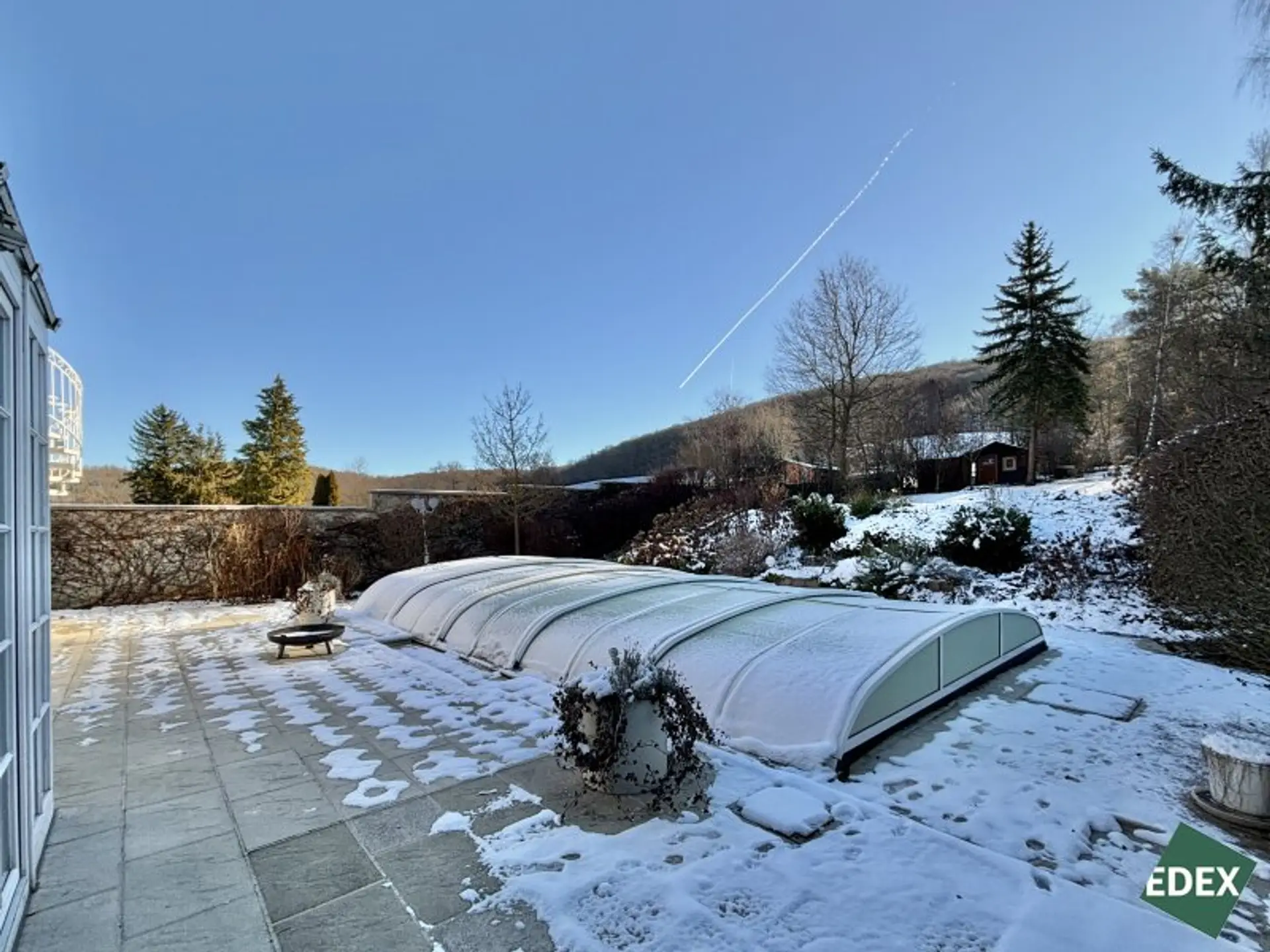 * Sonnenterrasse mit beheiztem Pool mit Außendusche