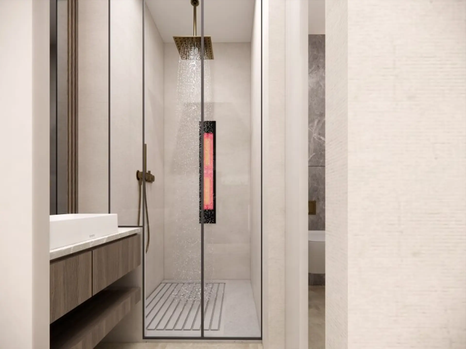 Das Master Bedroom mit begehbarem Kleiderschrank und eigenem Badezimmer bietet einen Rückzugsort von schlichter Eleganz, während das zweite Zimmer flexibel als Gäste-, Kinder- oder Arbeitszimmer genutzt werden kann.