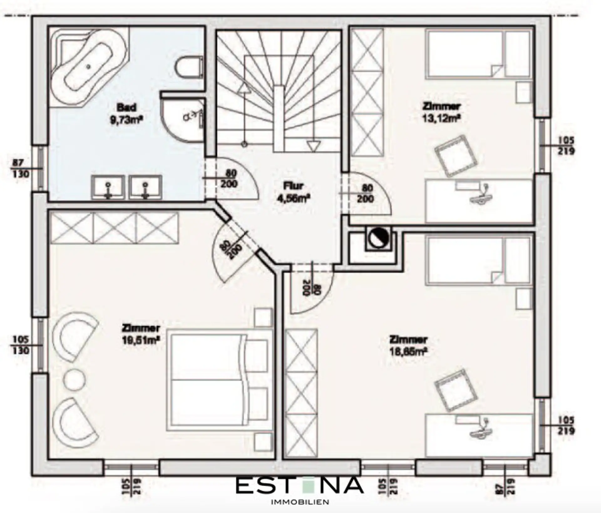* 3 Schlafzimmer