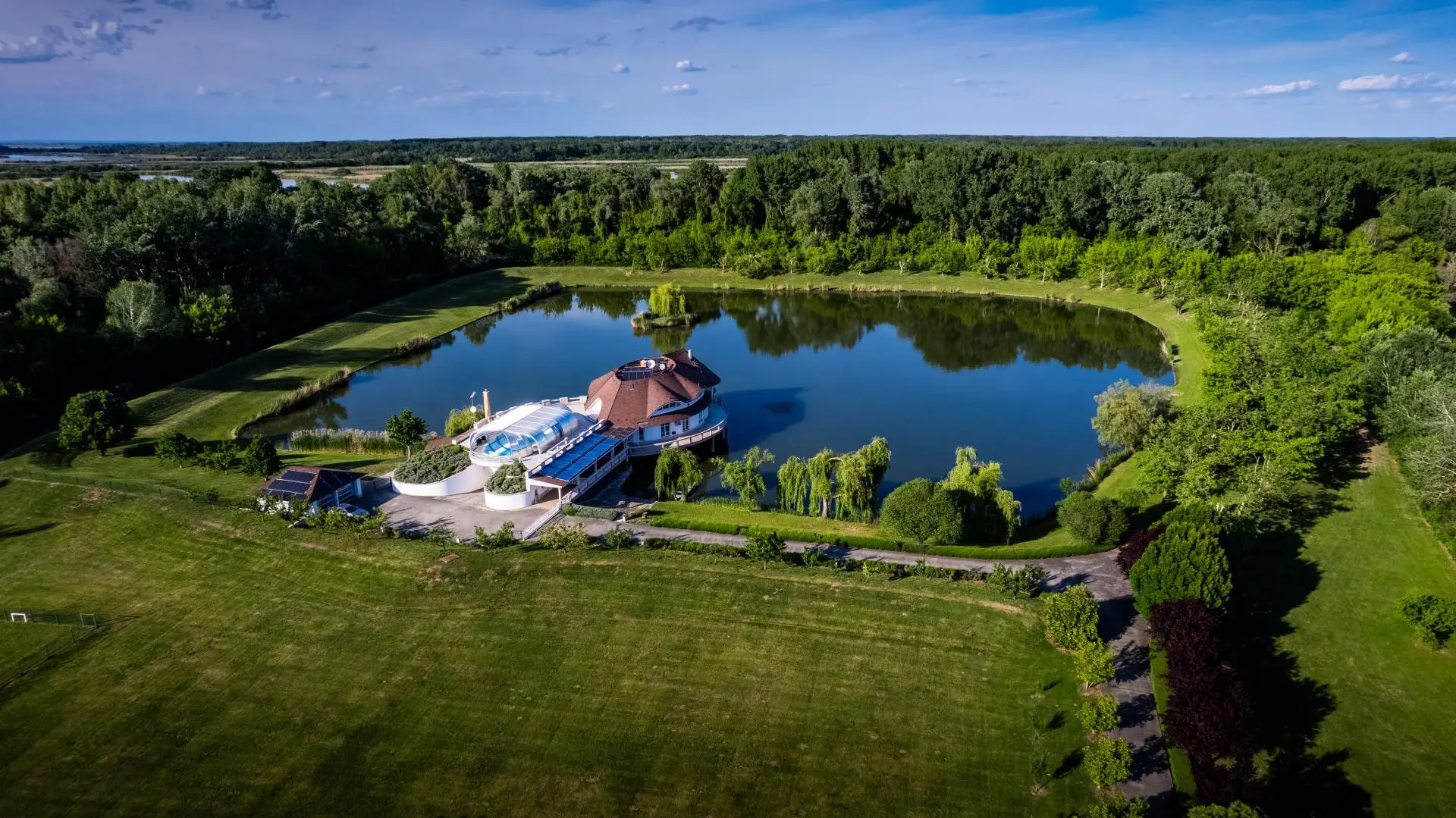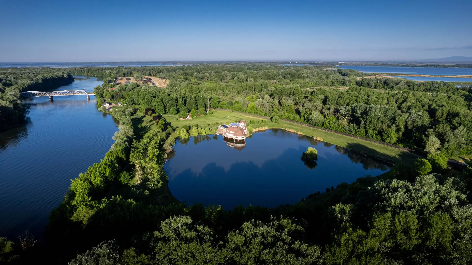 Dieses außergewöhnliche Anwesen mit einer Gesamtgrundstücksfläche von rund 68.000 m² befindet sich in 3388 Poroszló, direkt am Ufer des Theiß-Sees. Die Liegenschaft verfügt über ein 985 Meter langes privates Seeufer sowie einen ca. 2,5 Hektar großen privaten See – ein einzigartiges Naturrefugium mit höchster Privatsphäre.
