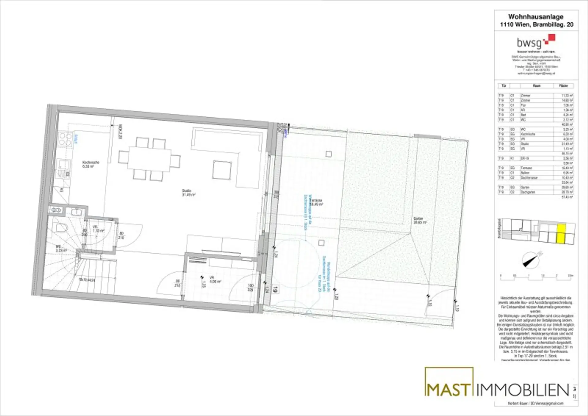 Ein Tiefgaragenstellplatz kann um 39.000 € erworben werden. Der Kaufpreis für die Wohnung beträgt für Anleger € 606.865,18 Netto zzgl. 20% USt.