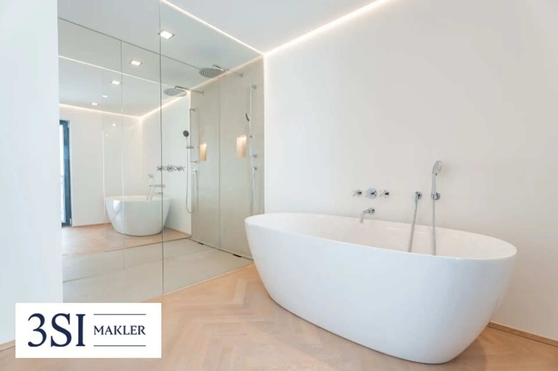 Der neu ausgebaute Dachgeschossbereich präsentiert sich als Erstbezug mit einer hochwertigen Ausstattung, die keine Wünsche offenlässt. Großzügige Raumhöhen, riesige Fensterfronten, stilvolle Details und ein harmonisches Zusammenspiel aus traditionellen Elementen und moderner Architektur verleihen diesem Zuhause eine besondere Atmosphäre.