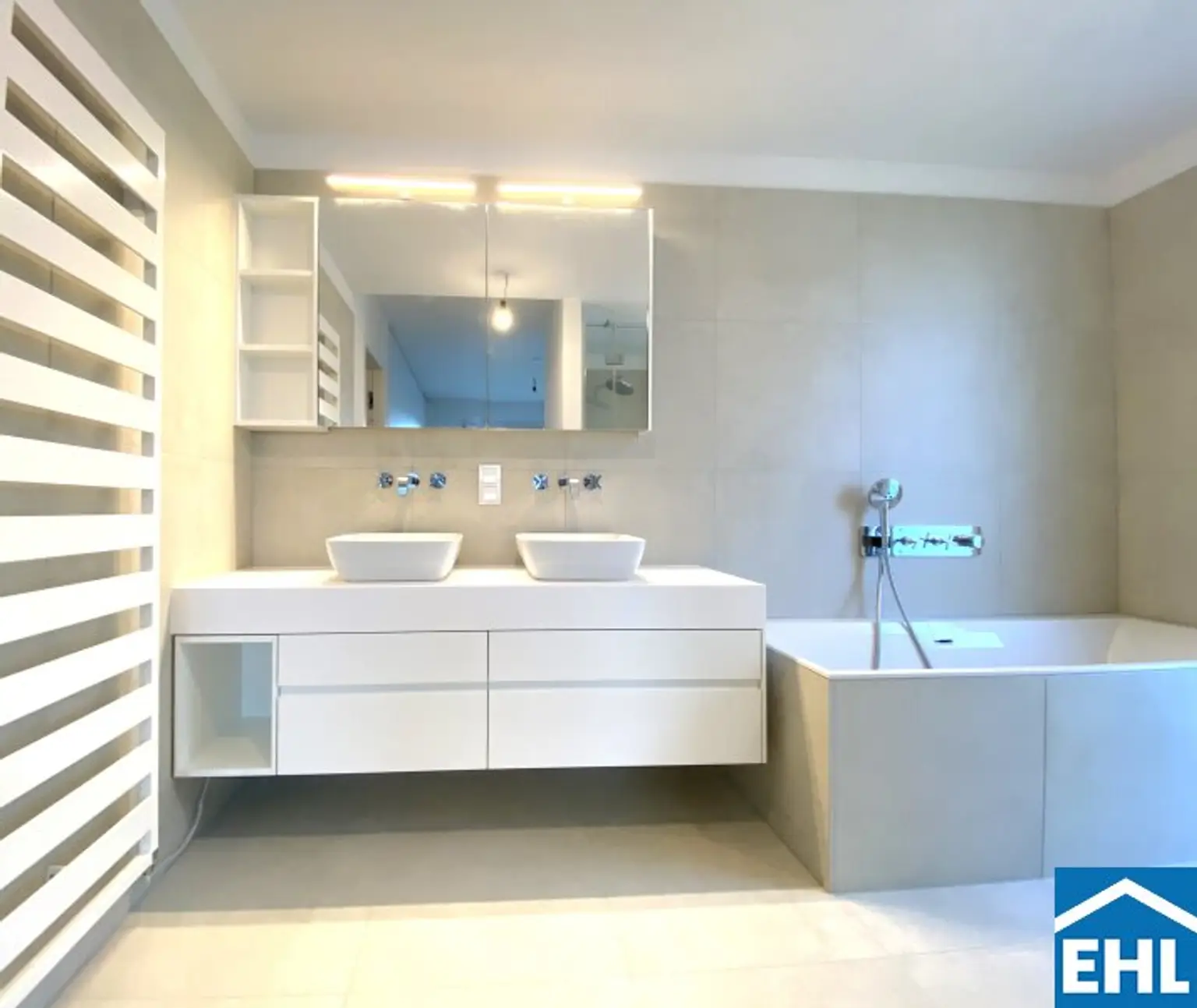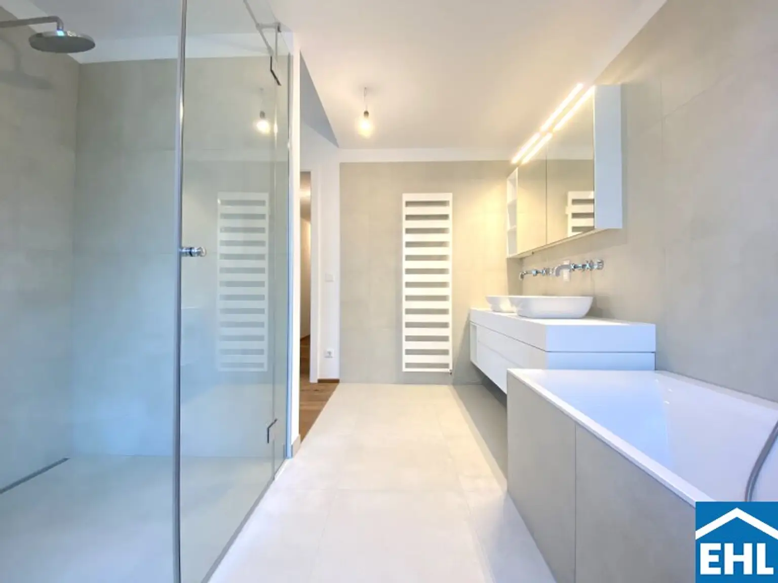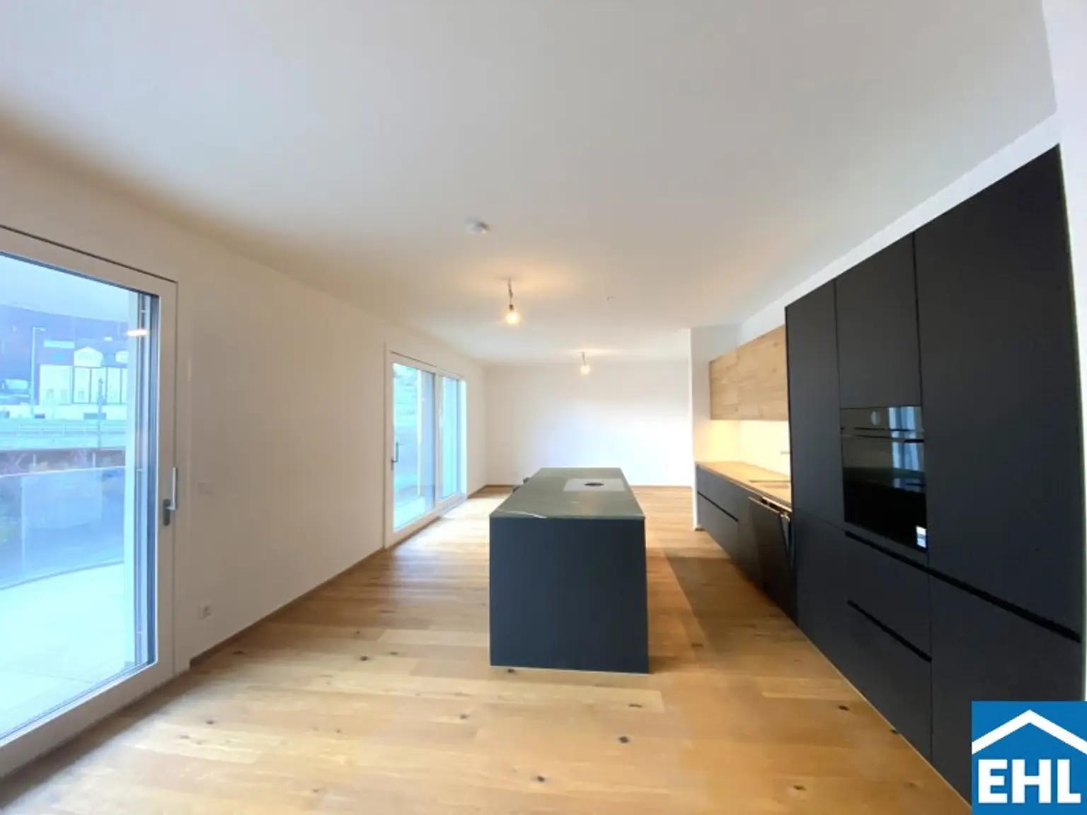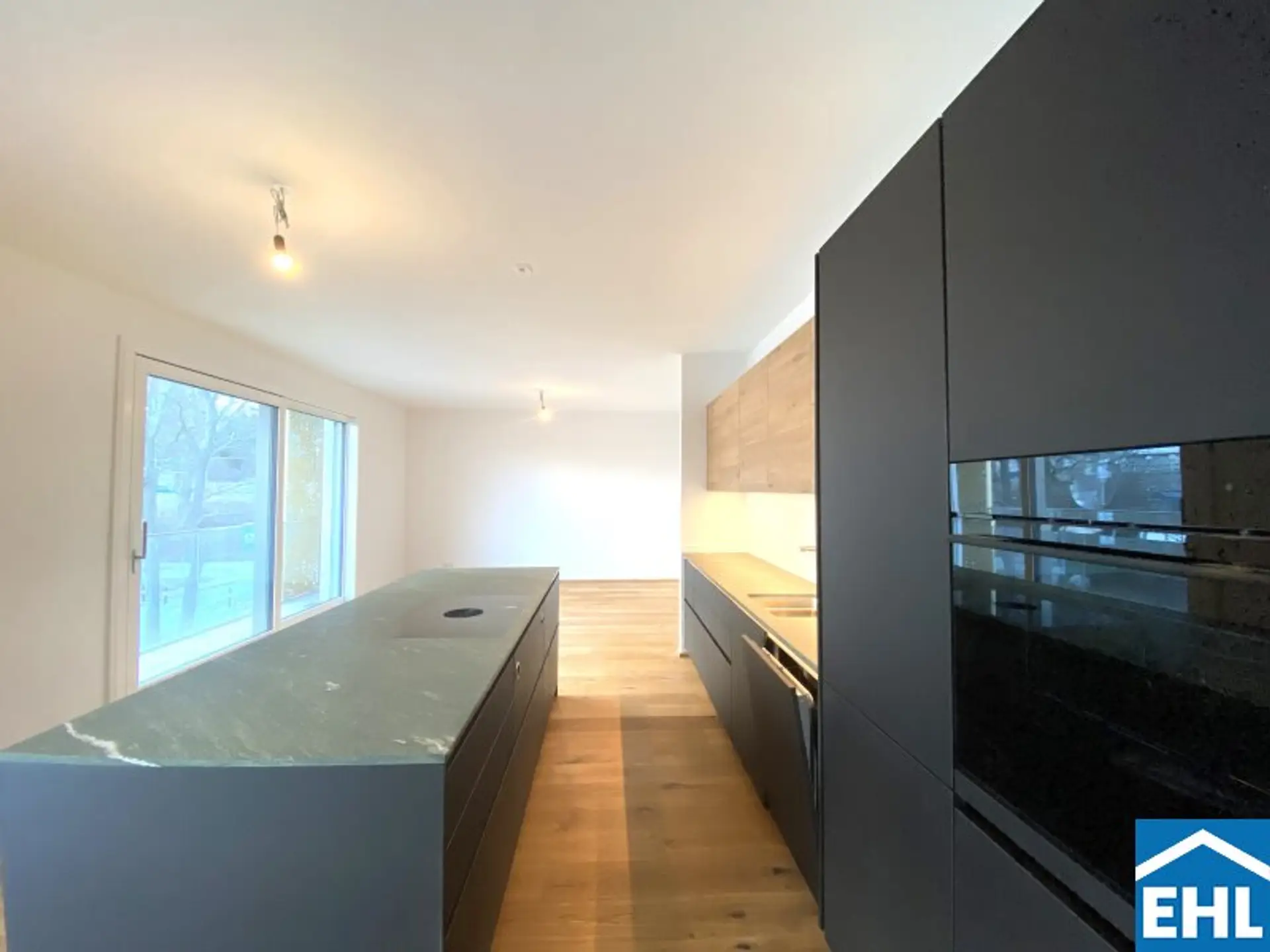 Die Wohnung liegt im Erdgeschoss und besticht durch eine großzügige, helle Wohnküche, drei separat begehbare Schlafzimmer, zwei moderne Badezimmer (einmal mit Wanne, WC und Doppelwaschbecken, einmal mit Dusche), eine separate Toilette, Abstellraum und Vorraum. Zwei Freiflächen laden zum Entspannen ein, zusätzlich gibt es zwei praktische Abstellräume auf den Loggien.