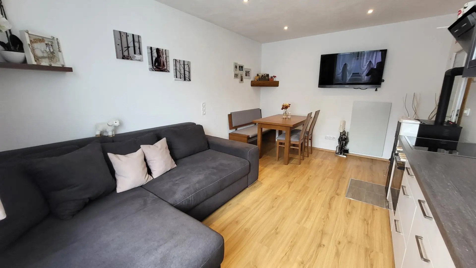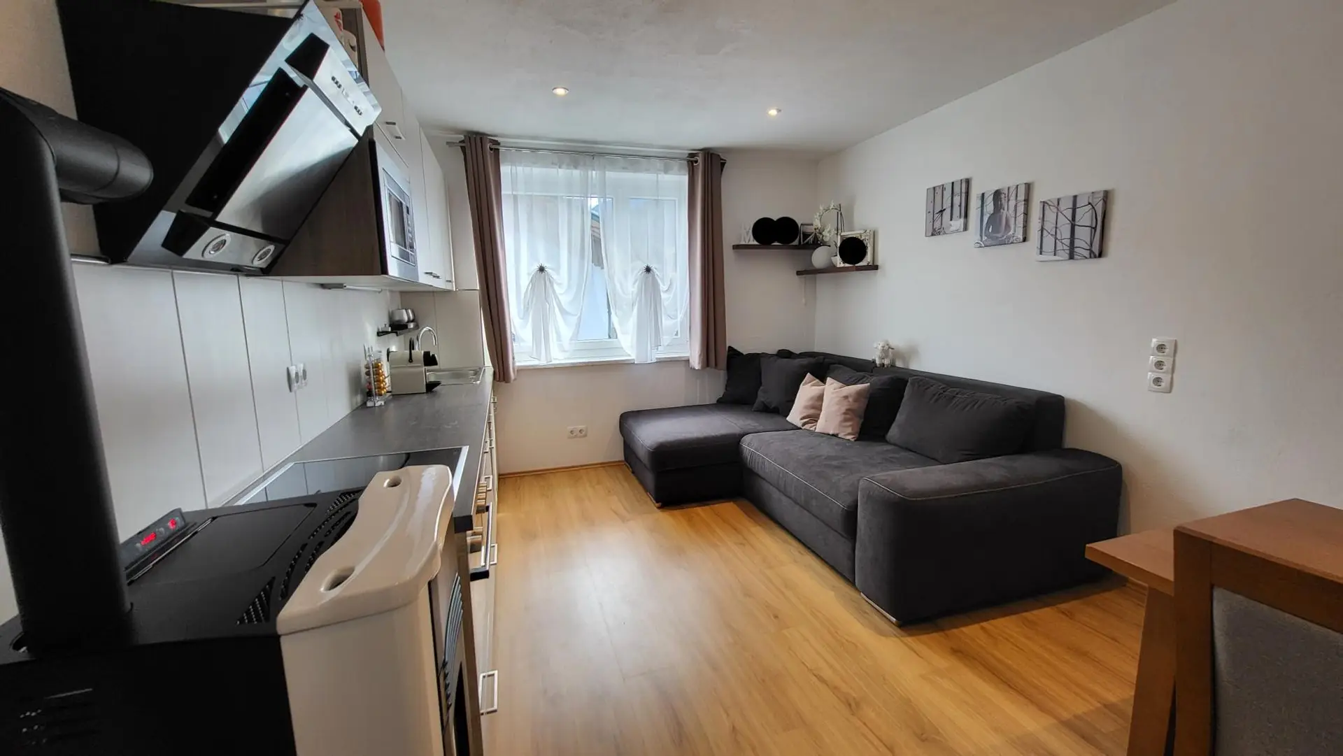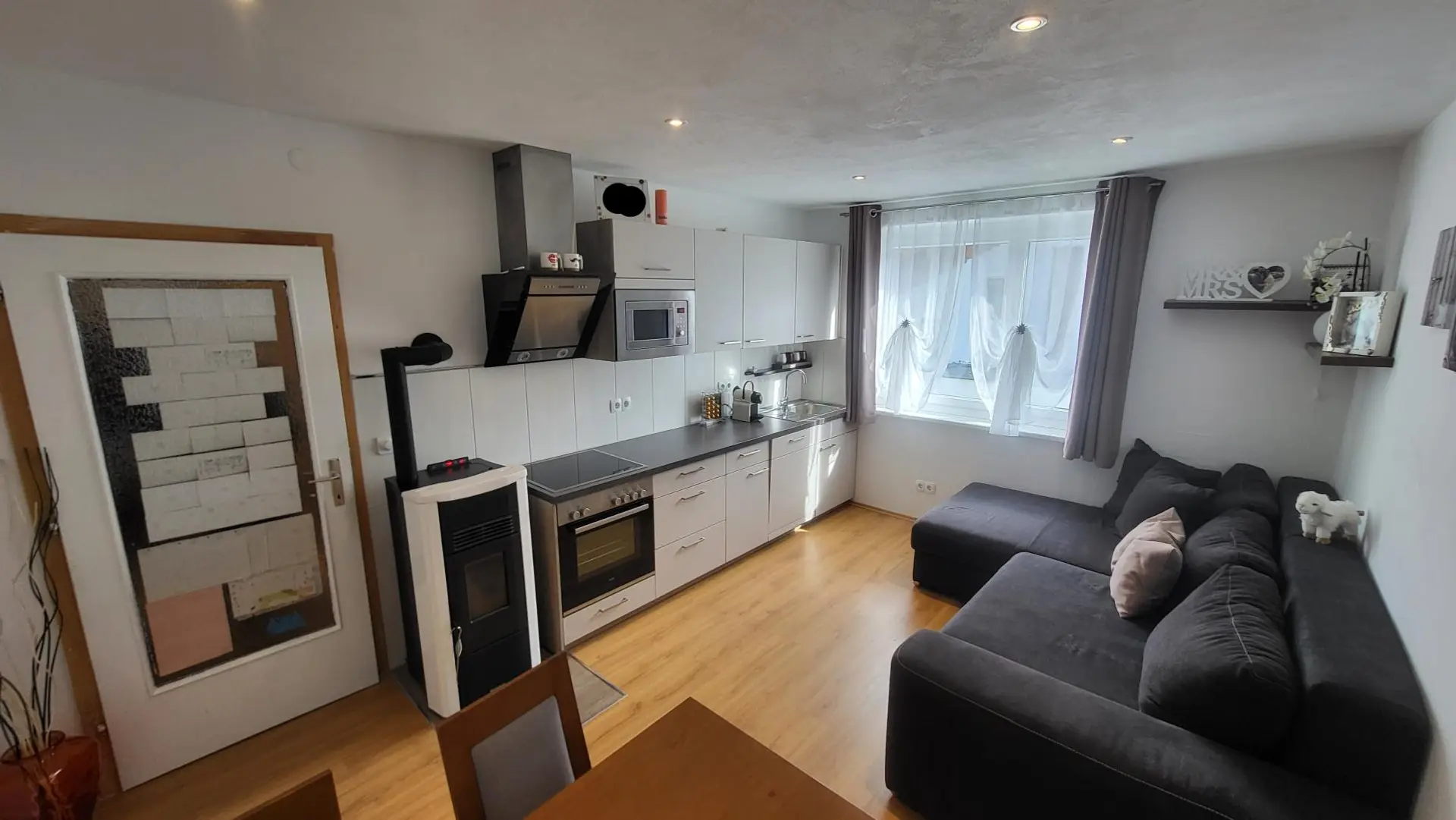 Ein besonderes Highlight ist die Beheizung mittels eigenem Pelletsofen in der Küche. Dieser sorgt nicht nur für wohlige Wärme, sondern schafft auch eine gemütliche, fast schon heimelige Atmosphäre, die besonders in der kühleren Jahreszeit geschätzt wird.