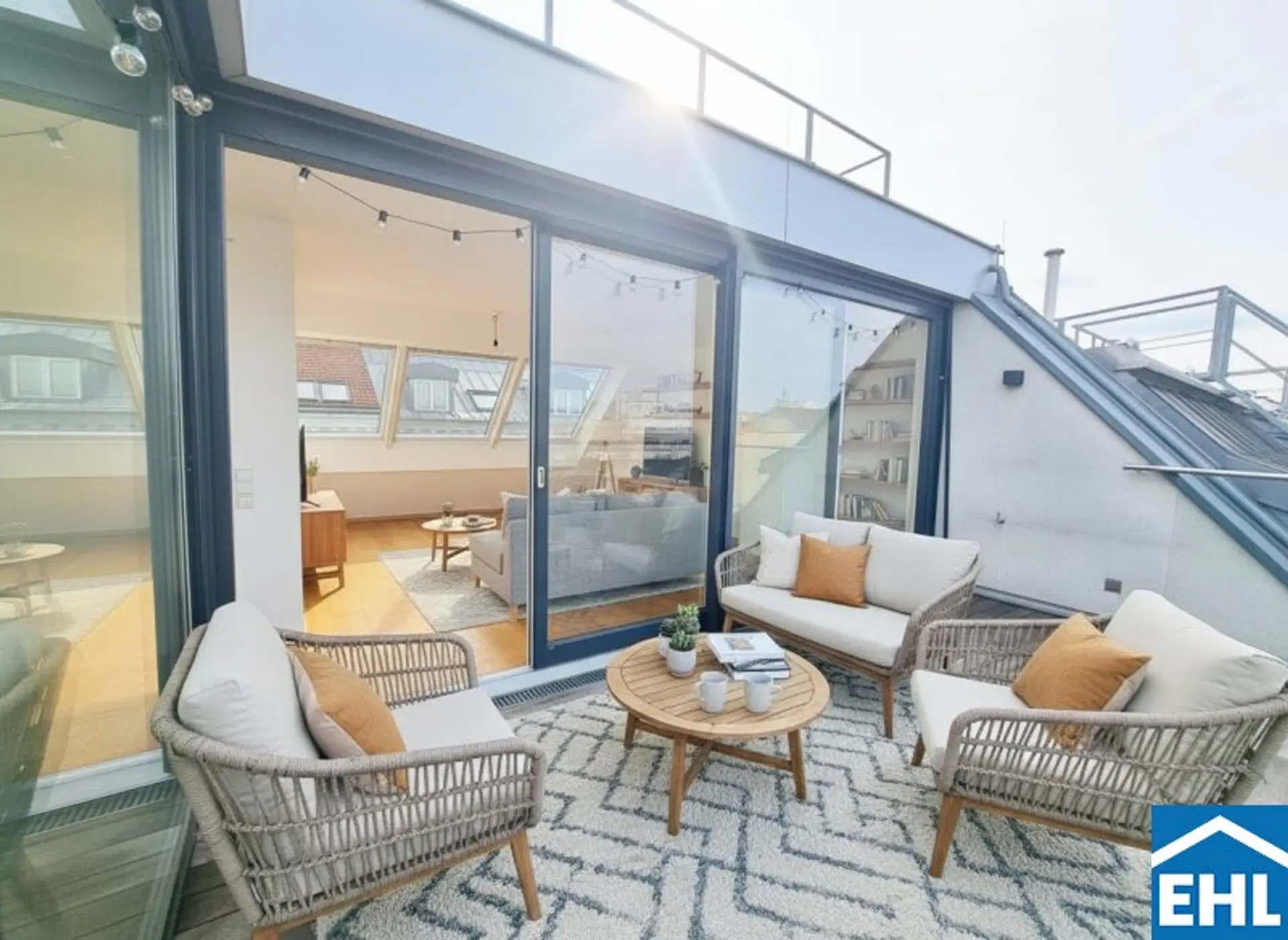 Bereits beim Betreten der Wohnung spürt man die besondere Atmosphäre: Großzügige, raumhohe Fensterflächen sorgen für ein lichtdurchflutetes Wohnambiente und schaffen fließende Übergänge zwischen Innen und Außen. Die moderne Holz-Alu-Fensterkonstruktion sowie Dachflächenfenster garantieren nicht nur optimale Belichtung, sondern auch ein angenehmes Wohnklima.