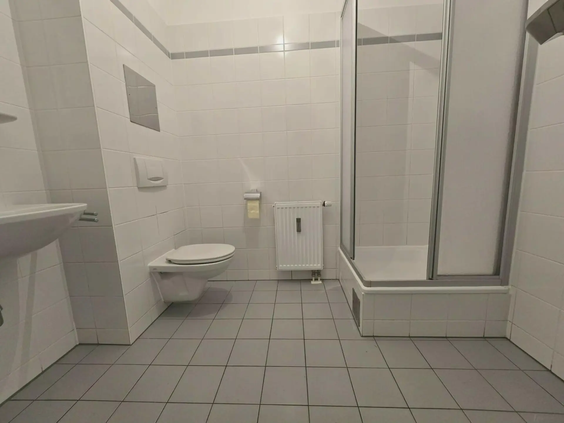 Das Badezimmer verfügt über eine Dusche und ein WC und bietet Ihnen einen Ort der Entspannung und Erfrischung.