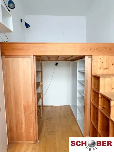 Schlafkabinett vom Wohnzimmer aus begehbar - mit Hochbett ausgestattet