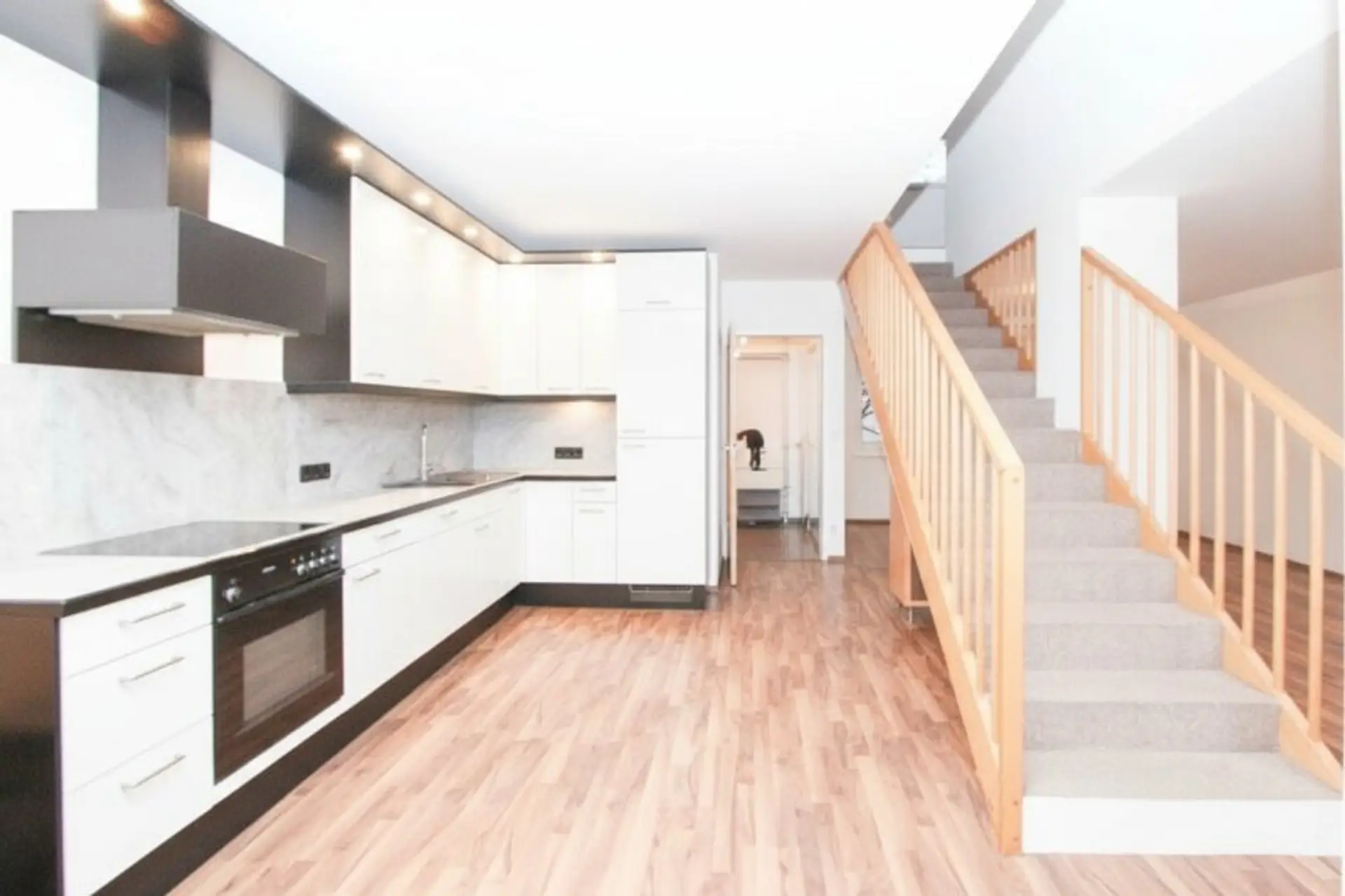 Auf der unteren Ebene befindet sich der Vorraum, das WC und der geräumige Wohnraum mit offener Küche (wurde neu eingebaut).