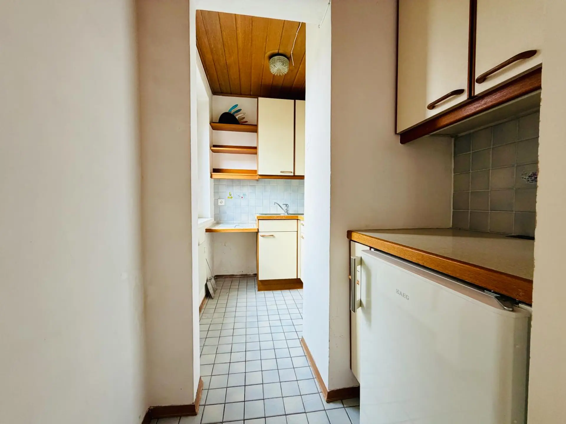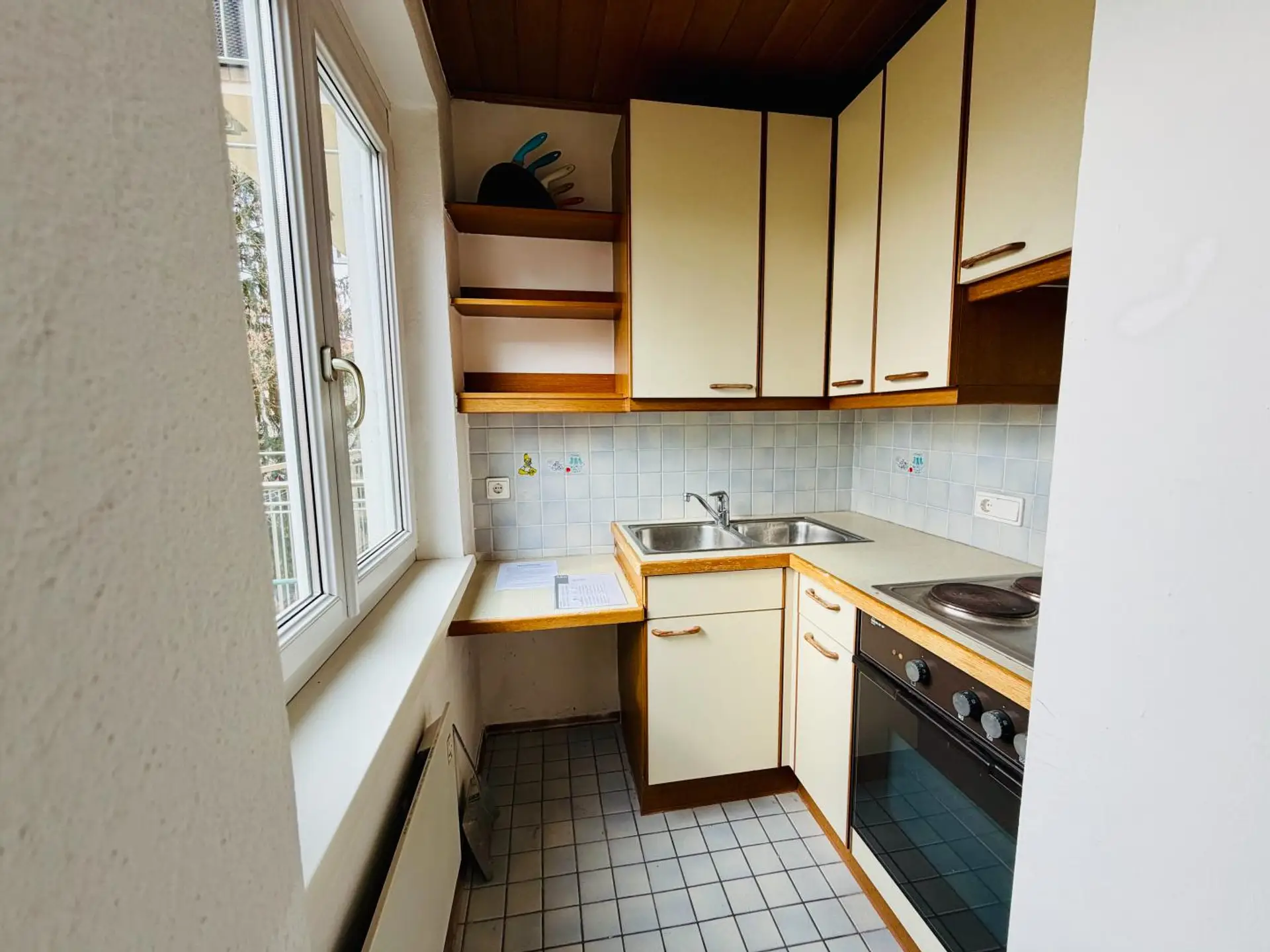 Über den Vorraum gelangen Sie in den sonnendurchfluteten Wohn/Schlafbereich, in welchem Parkettboden verlegt wurde. Die Küche schließt separat an den Wohnbereich an und ist praktisch ausgestattet. Alle E-Geräte sind im Mietpreis enthalten.