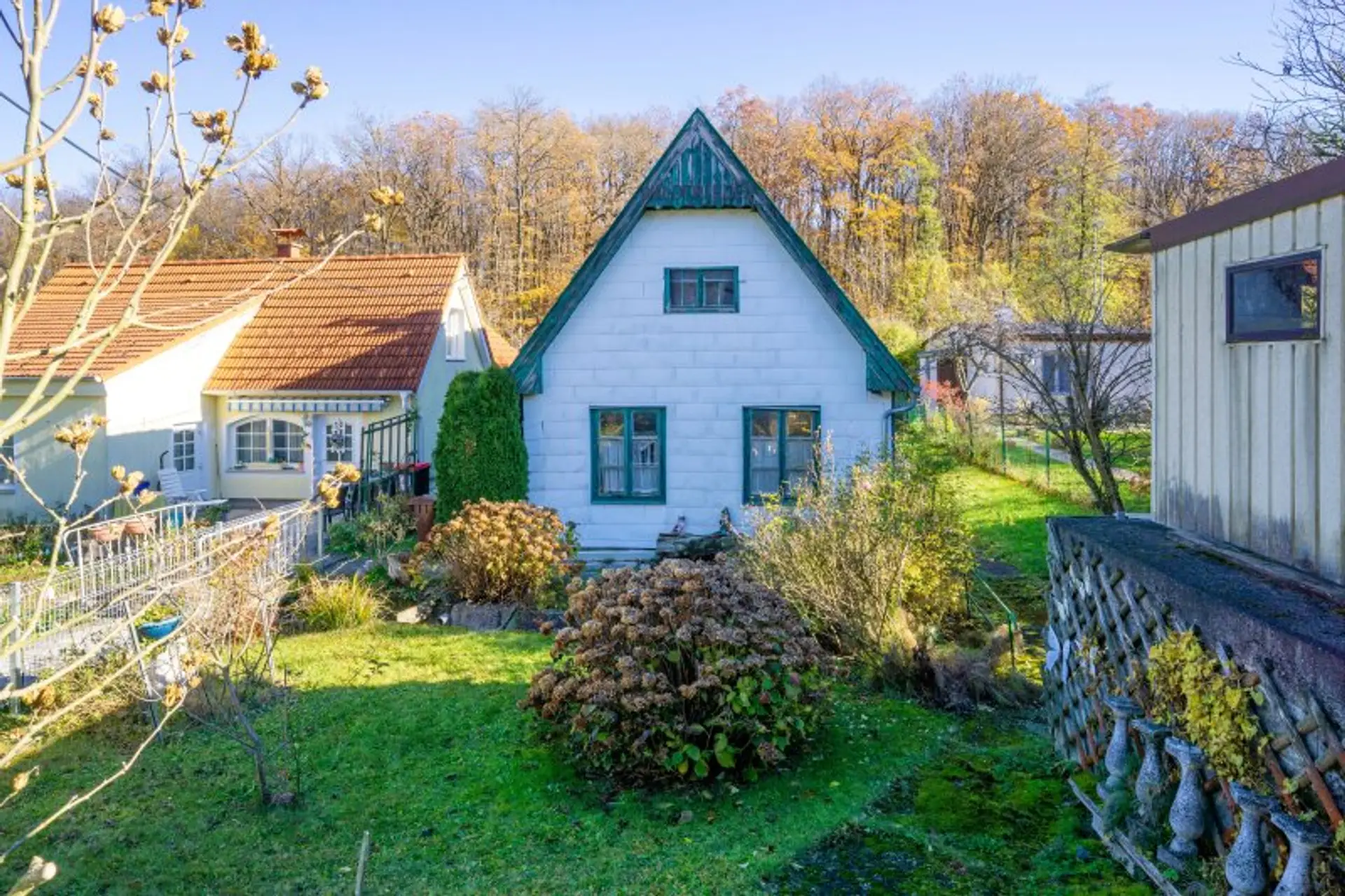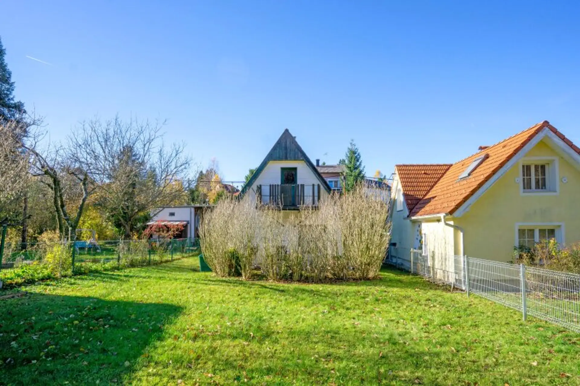 Auf dem Grundstück befinden sich ein abbruchreifes Häuschen aus dem Jahr 1933 sowie eine Blechgarage.