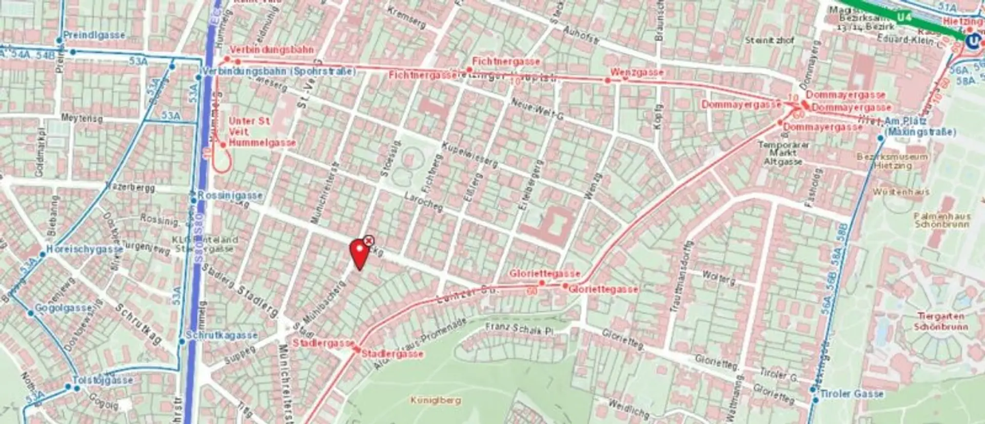 Die Lage ist ausgezeichnet und mit der Strassenbahnlinie 10 oder 60 ist man in wenigen Minuten im Zentrum am Platz. Zu Fuß sind die Geschäfte des täglichen Bedarfs in einigen Minuten erreichbar.