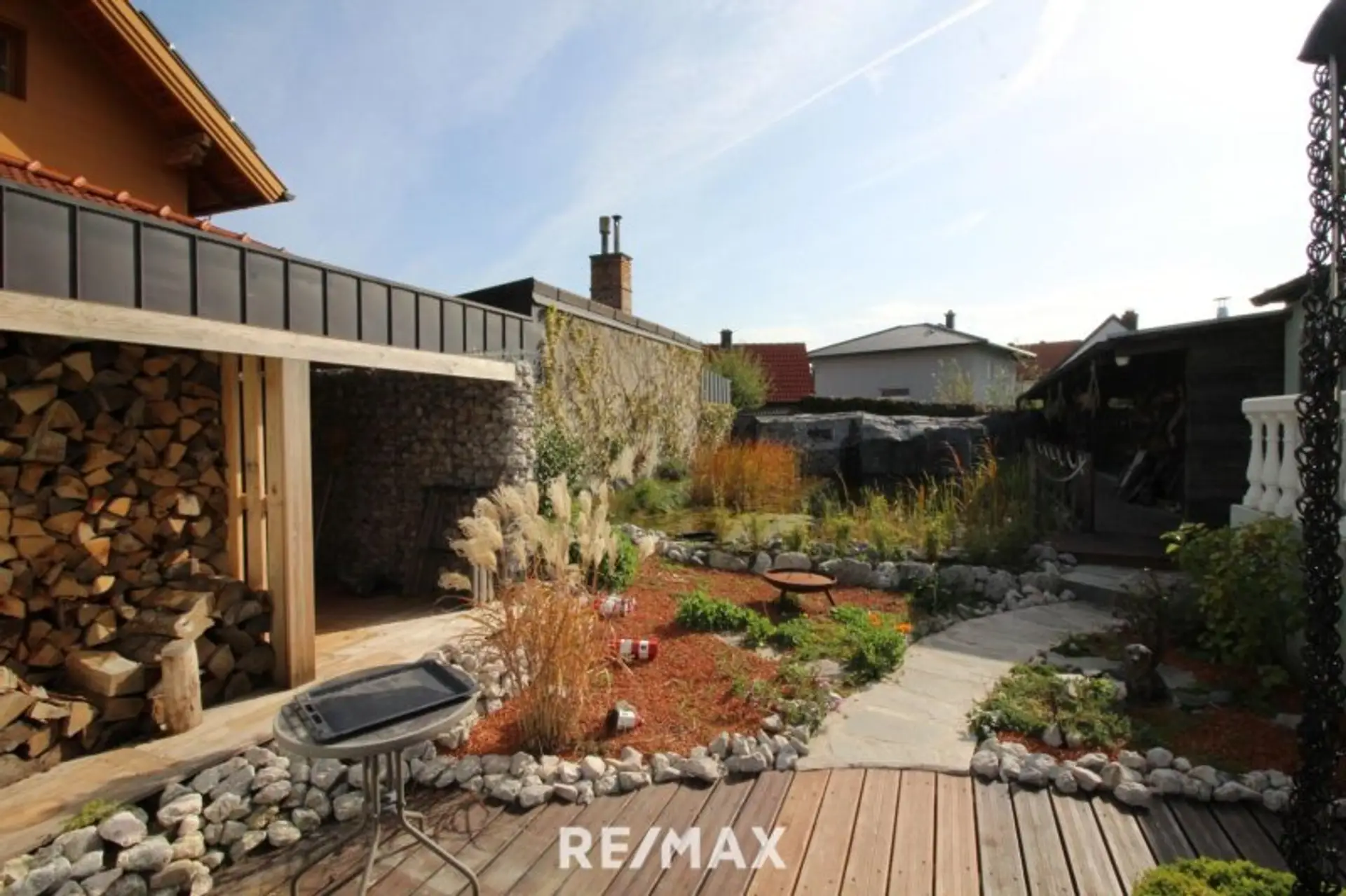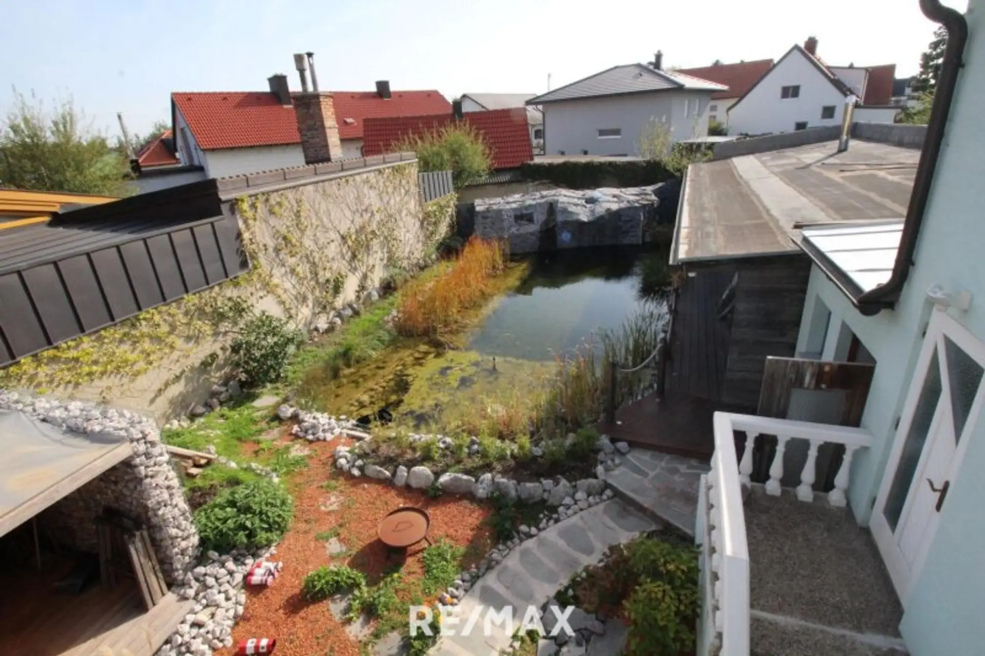 GARTEN: Terrasse vor dem Haus und Sommerhaus , Schwimmteich mit Wasserfall und Holzterrasse, Sommerhaus mit großem Aufenthaltsbereich und Nassräumen, sowie zwei Abstellräume.