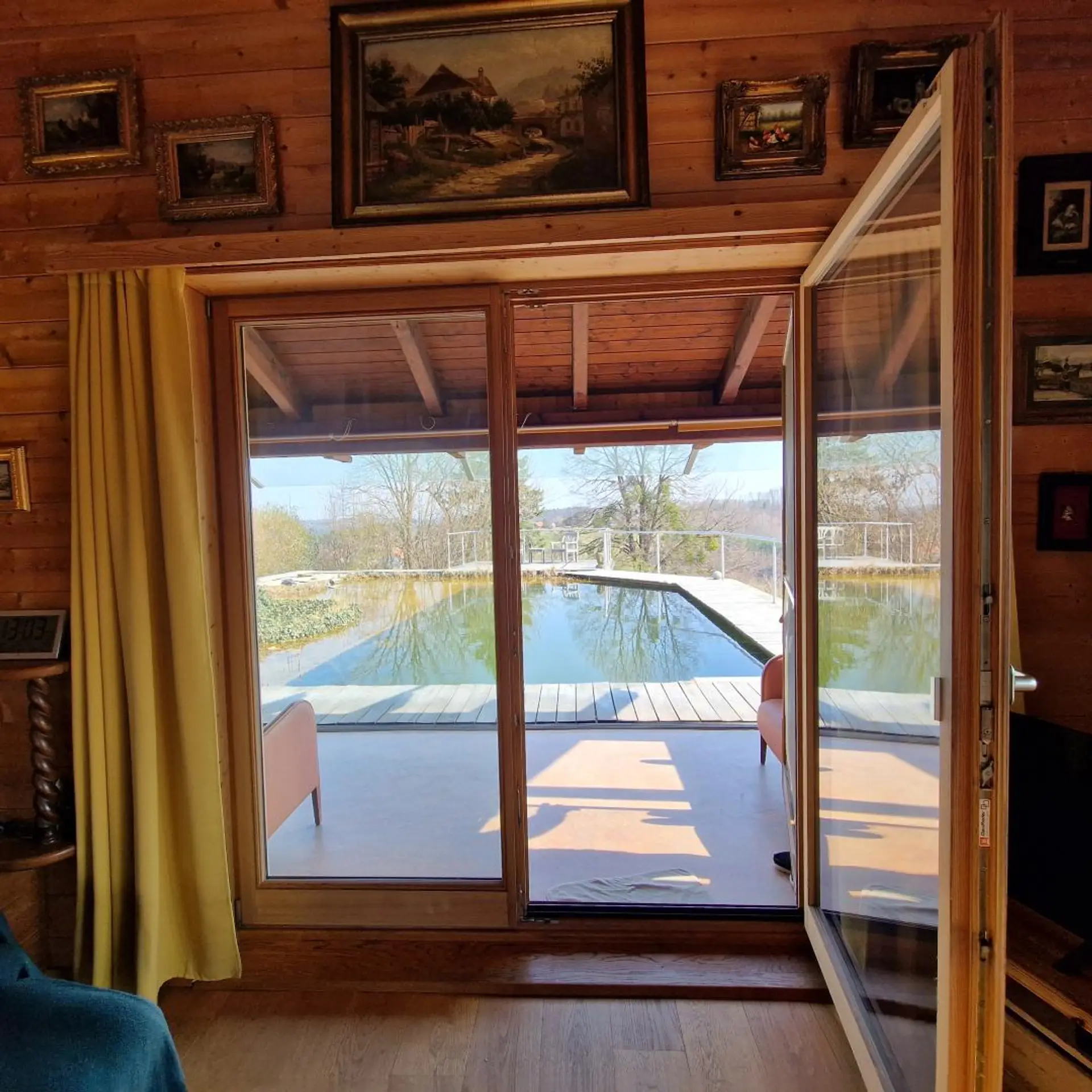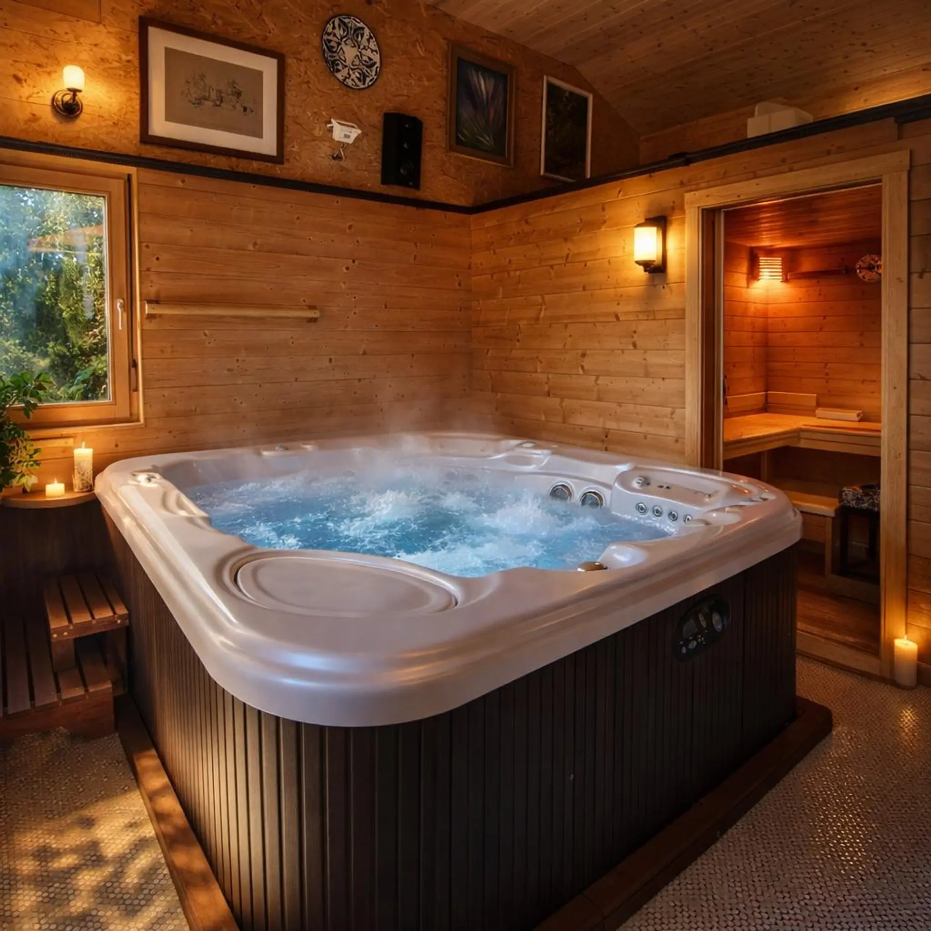 Ein besonderes Highlight ist der Außenbereich, der zu einer privaten Wohlfühl- und Wellnessoase gestaltet wurde. Neben dem Naturbadeteich stehen ein Jacuzzi und eine Sauna mit Duschbereich zur Verfügung – perfekte Voraussetzungen für Entspannung und Erholung im eigenen Zuhause.