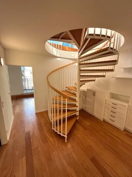 Die Maisonette-Wohnung befindet sich im DG (4. Stock, ein Lift ist vorhanden). Sie erstreckt sich auf drei Ebenen, und zwar zwei Wohnebenen und auf der dritten Ebene befindet sich die Gartenterrasse. Das Haus inklusive dem Dachgeschoss wurde 2002 errichtet und befindet sich in Gersthof.