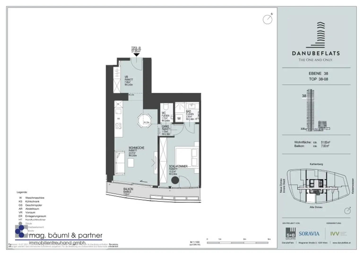 Die Danube Flats bieten ein All-in-One-Konzept der Extraklasse: Ein großzügiger Spa-Bereich mit Sauna, ein ganzjährig beheizter Außenpool, ein topmodernes Fitnesscenter sowie eine elegante Cocktailbar und ein Restaurant mit attraktivem Gastgarten stehen ausschließlich den Bewohnerinnen und Bewohnern zur Verfügung. Die direkte Anbindung an die Neue Donau eröffnet einzigartige Freizeitmöglichkeiten direkt vor der Haustür - ob Joggen, Spazieren, Radfahren oder einfach den Ausblick genießen. Im 12. Stock finden Sie eine voll ausgestattete Event-Lounge zur Verfügung