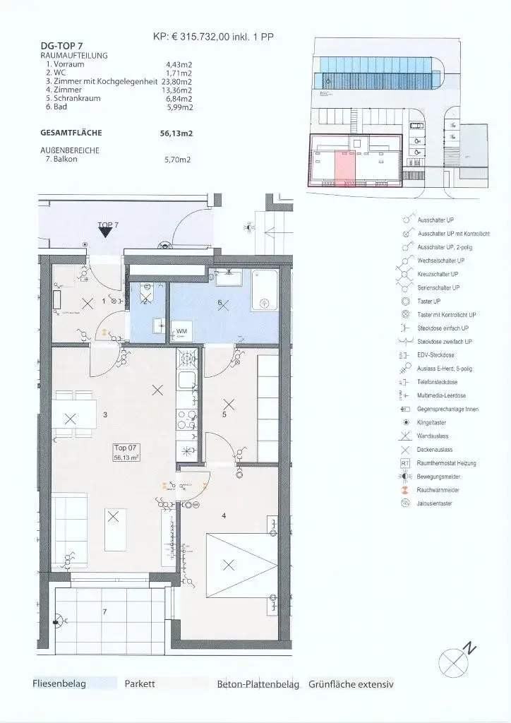 Die Wohnung überzeugt durch eine durchdachte Raumaufteilung, helle Wohnräume sowie einen großzügigen Außenbereich mit Balkon ( 5,70m²) und Grünflächen. Ein zugehöriger Parkplatz ist im Angebot inkludiert.