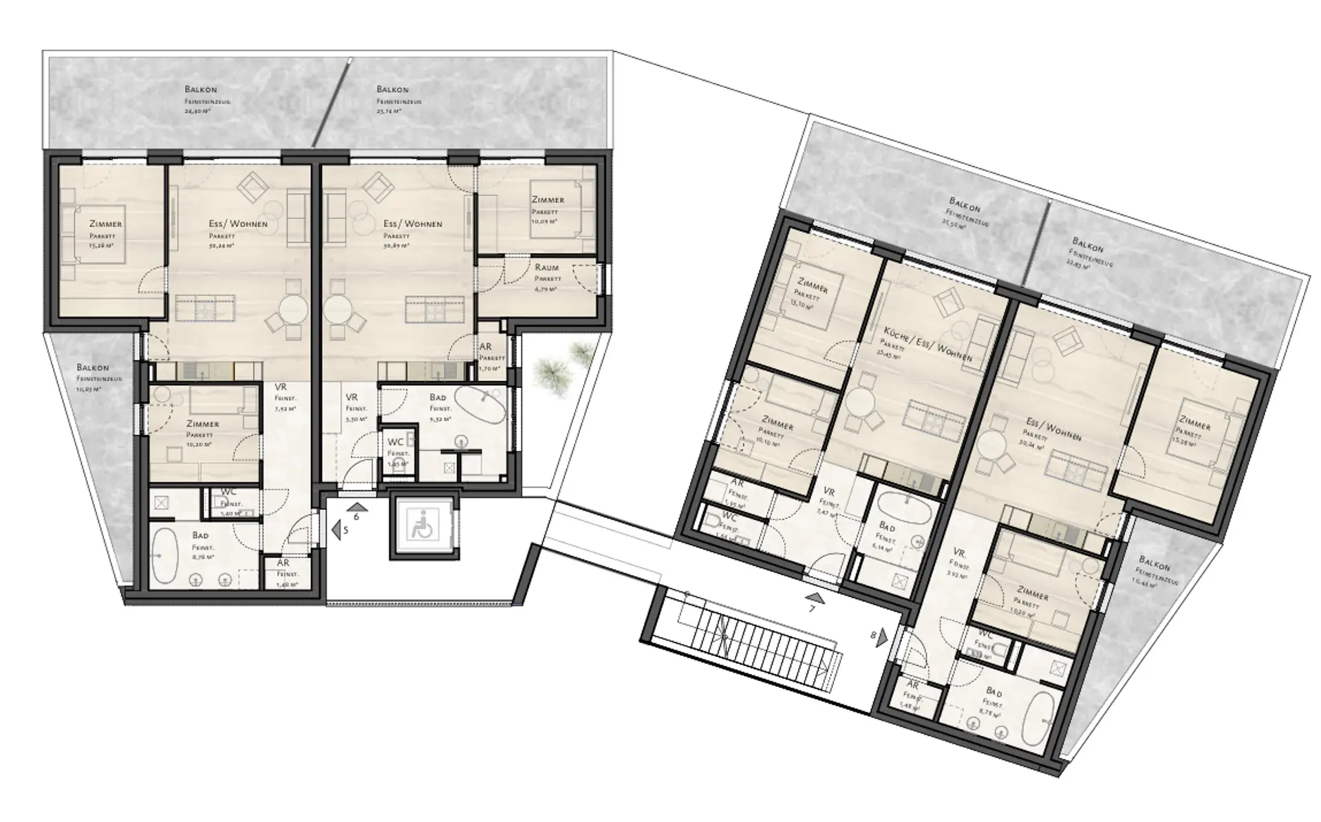 • Balkon ca. 25 m², Ausrichtung Osten