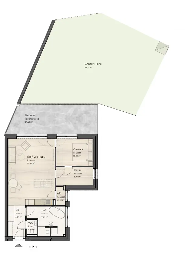 • Privatgarten knapp 100 m²