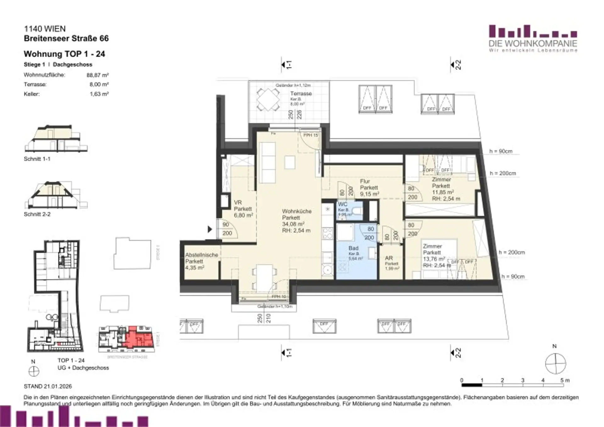 Willkommen in Ihrem neuen Zuhause im Herzen des begehrten 14. Bezirks in Wien – eine exklusive Dachgeschosswohnung, die modernes Wohnen auf höchstem Niveau verkörpert. Diese erstklassige 3-Zimmer-Wohnung mit einer großzügigen Fläche von 88,87 m² im 1. Dachgeschoss bietet Ihnen ein unvergleichliches Wohngefühl und ist der perfekte Ort, um Ihre Träume zu verwirklichen.
