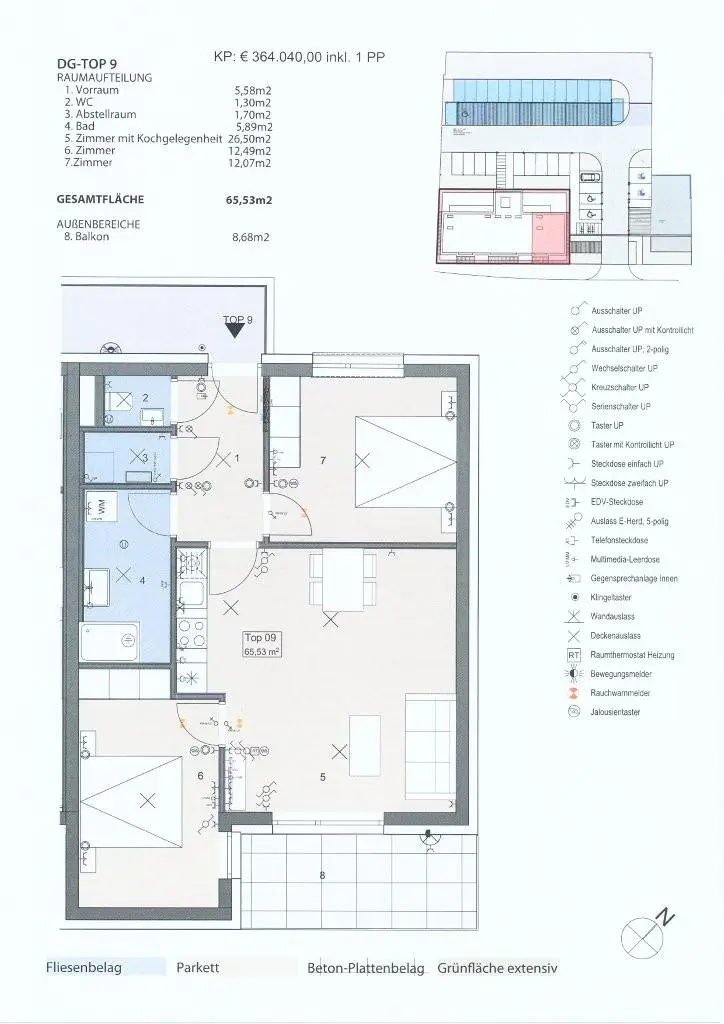 Die Wohnung überzeugt durch eine durchdachte Raumaufteilung, helle Wohnräume sowie einen großzügigen Außenbereich mit Balkon (8,68 m²) und Grünflächen. Ein zugehöriger Parkplatz ist im Angebot inkludiert.