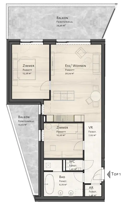 • Zwei Balkone, Ausrichtung Nord / Ost