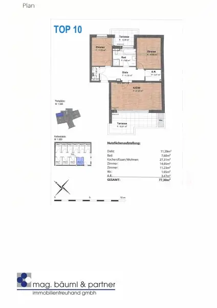 Top 10: ca 78m² - ca 22m² Balkone- 3 Zimmer- Bauzins mtl. € 275,00