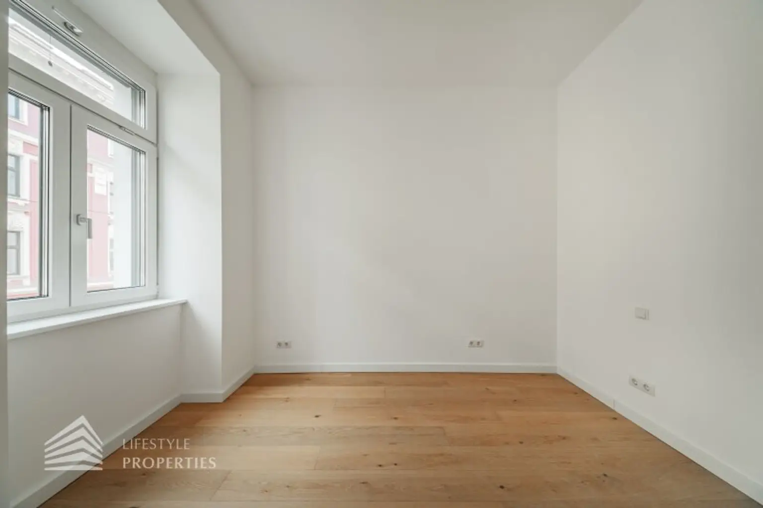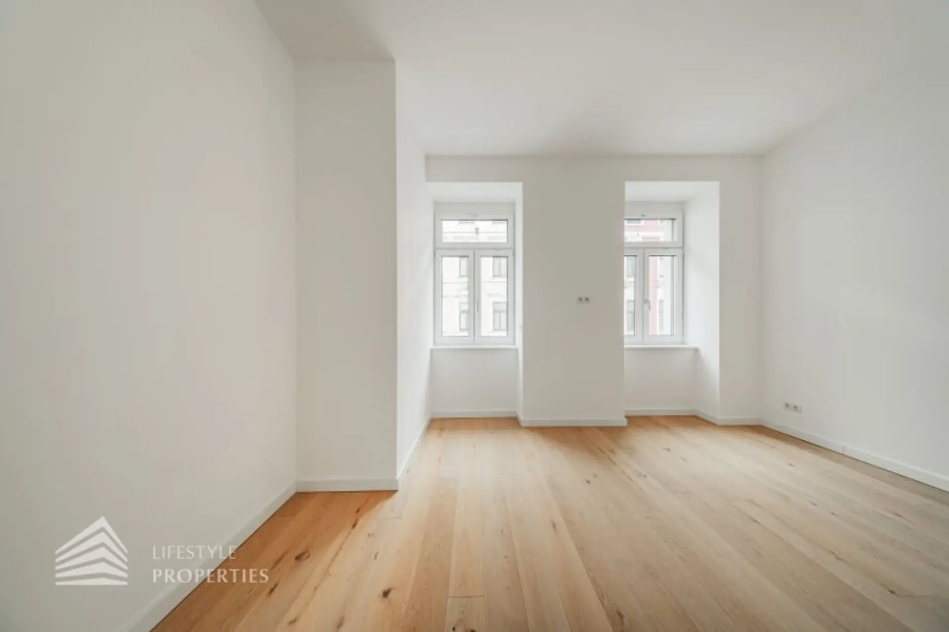 Alle Wohnräume sind mit hochwertigem Eichenparkett ausgestattet, während das Badezimmer mit zeitlos eleganten Fliesen versehen ist.
