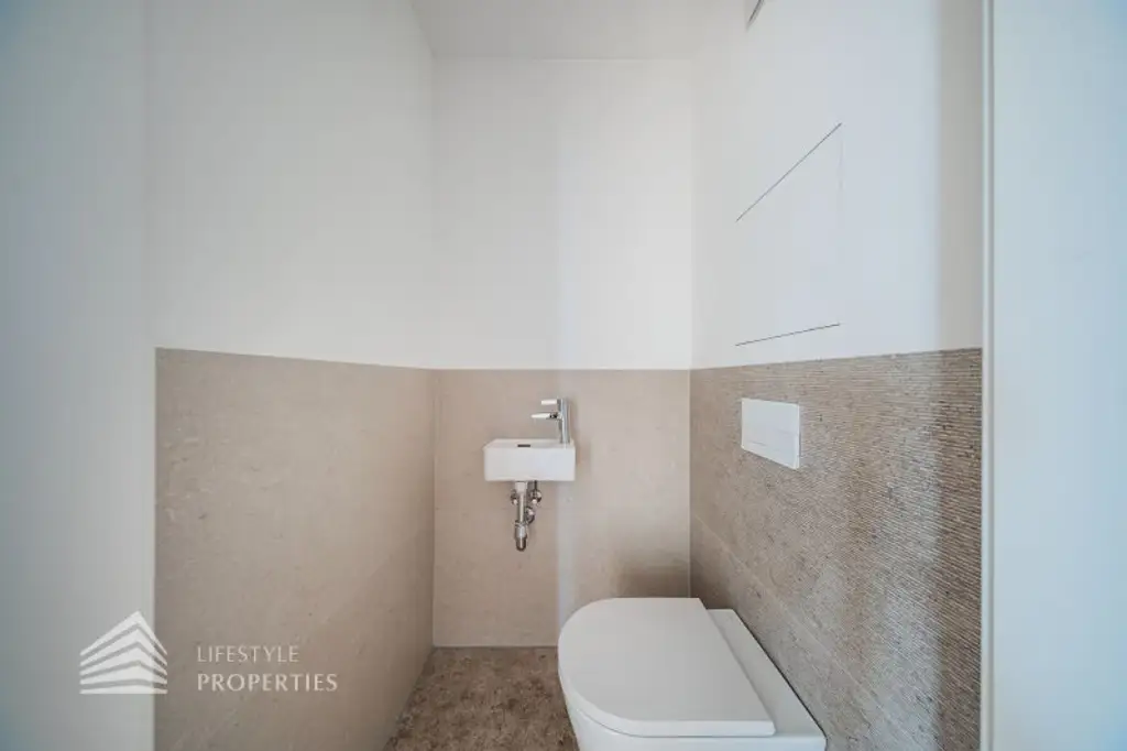 Die Wohnungen werden mittels Fußbodenheizung über eine Luft-Wärmepumpe geheizt, eine Deckenkühlung sorgt in den warmen Monaten für angenehme Temperaturen und Vorrichtungen zum Einbau einer Klimaanlage sind auch vorhanden. Weiters sind elektrisch betriebene Außenjalousien / Raffstores vorhanden. Ein Platz in der hauseigenen Tiefgarage kann zusätzlich erworben werden.