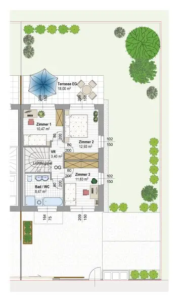 + 97,05 m² Wohnnutzfläche, 18 m² Terrasse, ca. 114 m² Garten