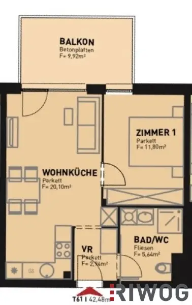 * Wohnflächen zwischen 35 m² und 88 m² (Aktuell verfügbare Größen von rd. 36-60m²)