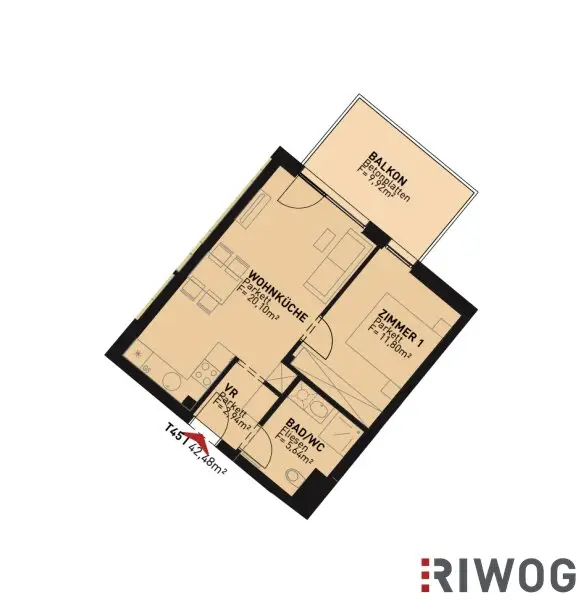 * Wohnflächen zwischen 35 m² und 88 m² (Aktuell verfügbare Größen von rd. 36-60m²)