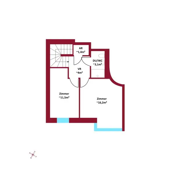 * Zimmer 1: ca. 16,15 m²