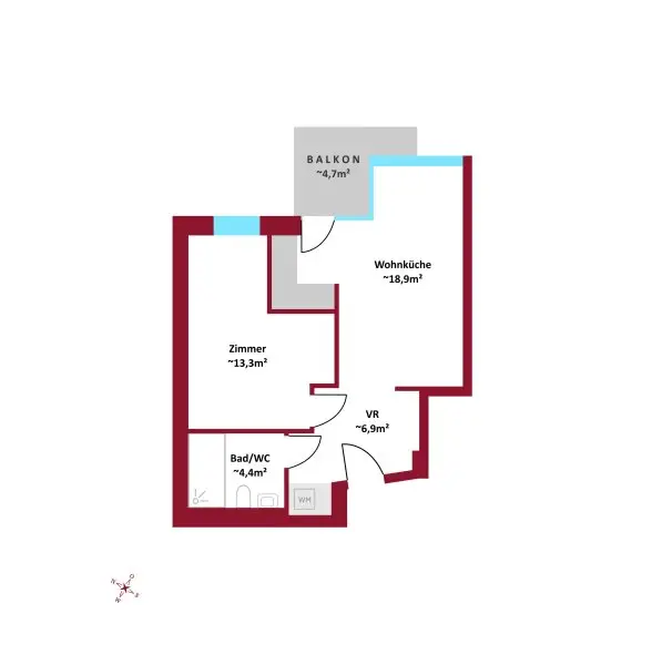 Diese moderne 43 m² Wohnung richtet sich an Menschen, die bewusst wohnen möchten. Singles oder Paare, die Wert auf Qualität und Funktionalität legen.