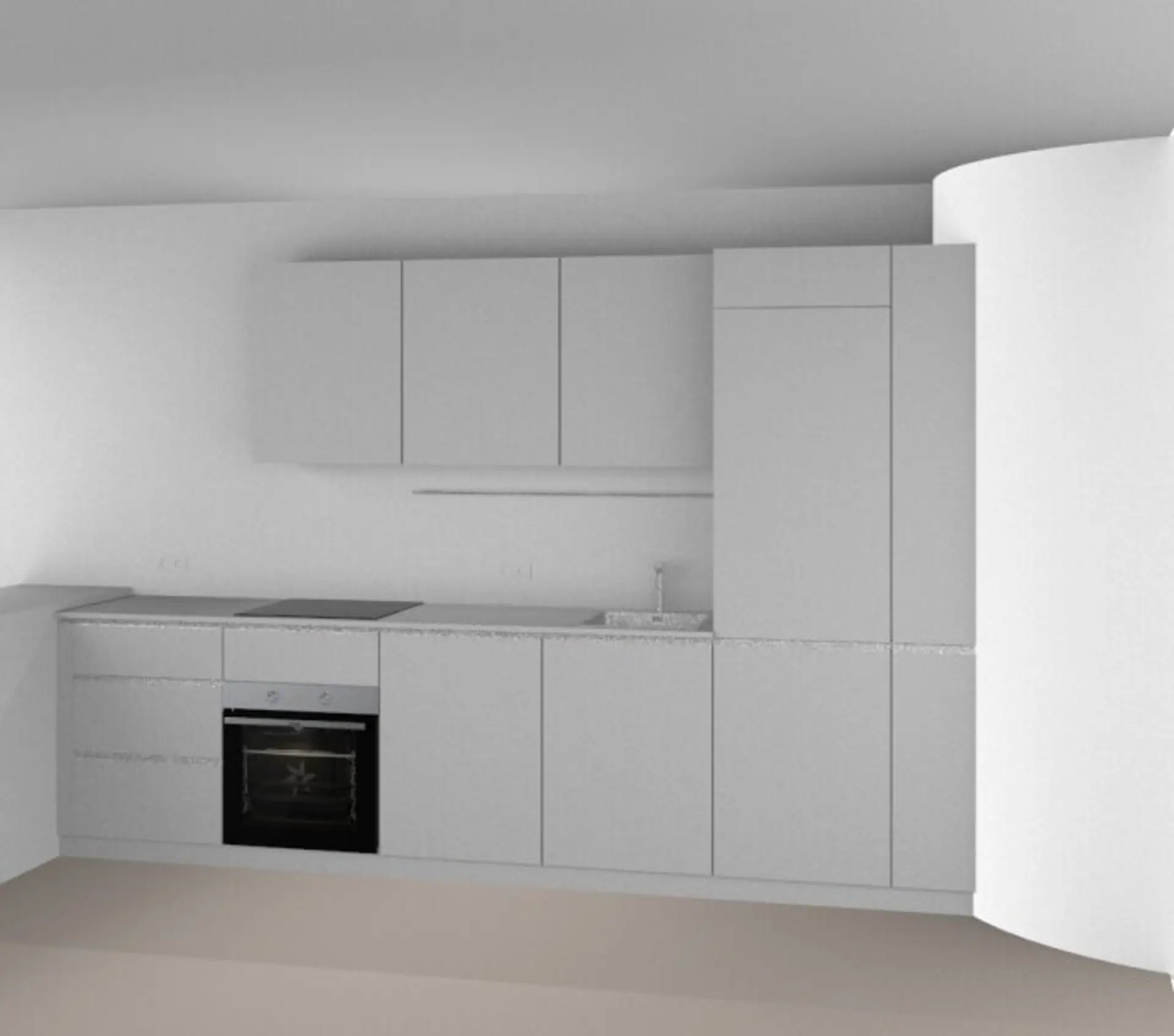 Jede Wohnung wird mit einer neuen, modernen Küche ausgestattet. Die derzeit gezeigten Bilder sind KI-generiert.