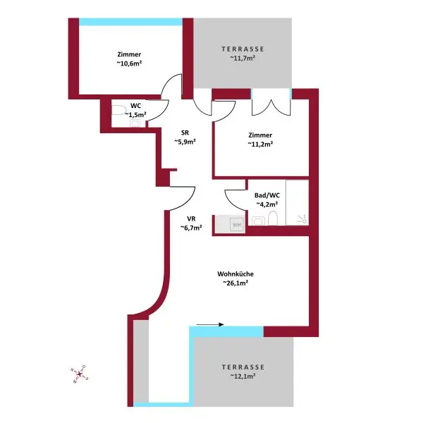 * WC: ca. 1,48 m²