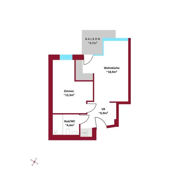 TOP 11 | 43 m² | 2 Zimmer | Balkon in den ruhigen Innenhof