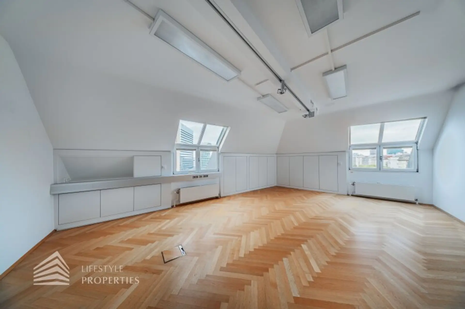 Zur Vermietung gelangt ein beeindruckendes 6-Zimmer Büro im ersten Bezirk, in der Nähe vom Schwedenplatz.