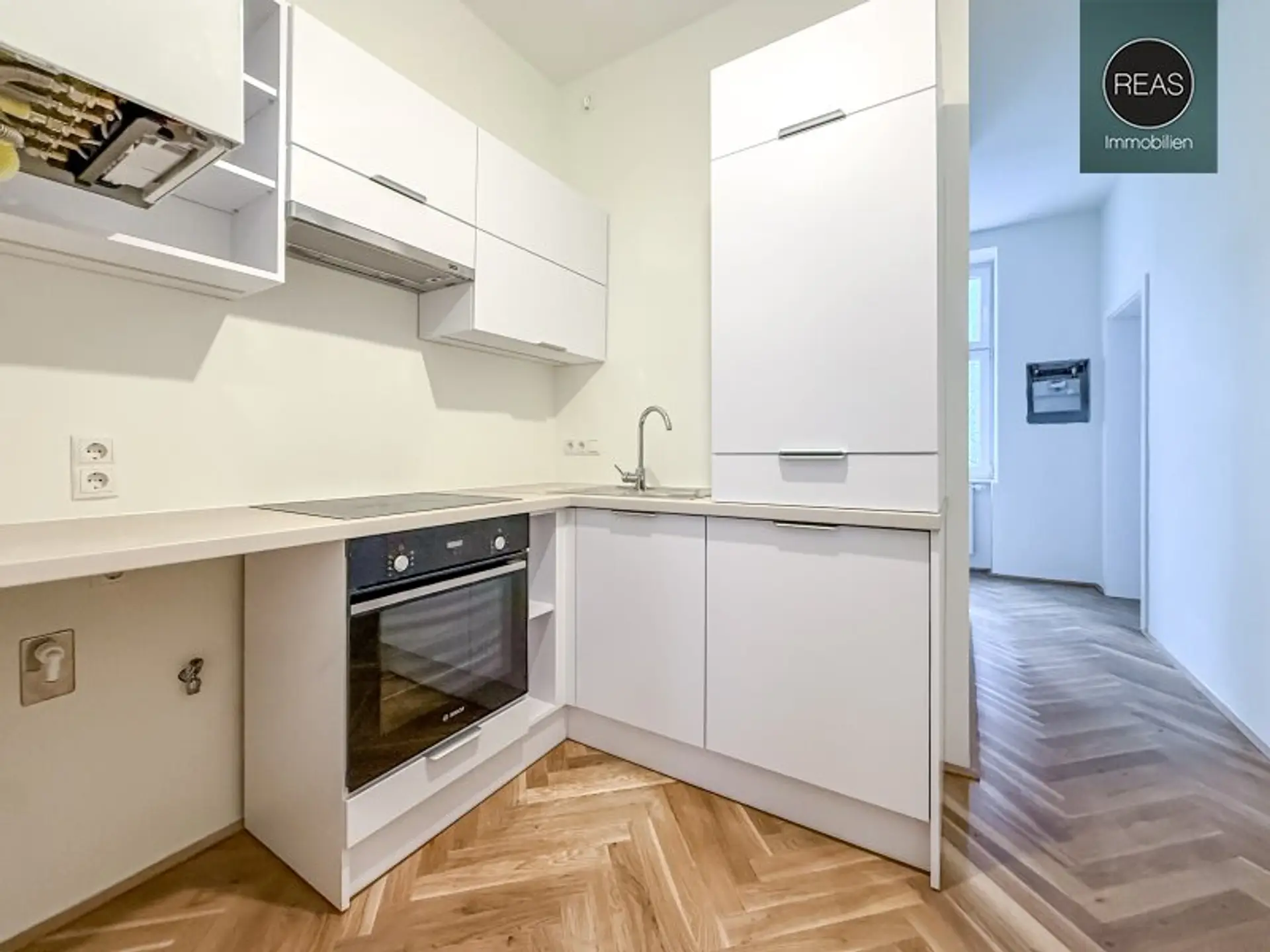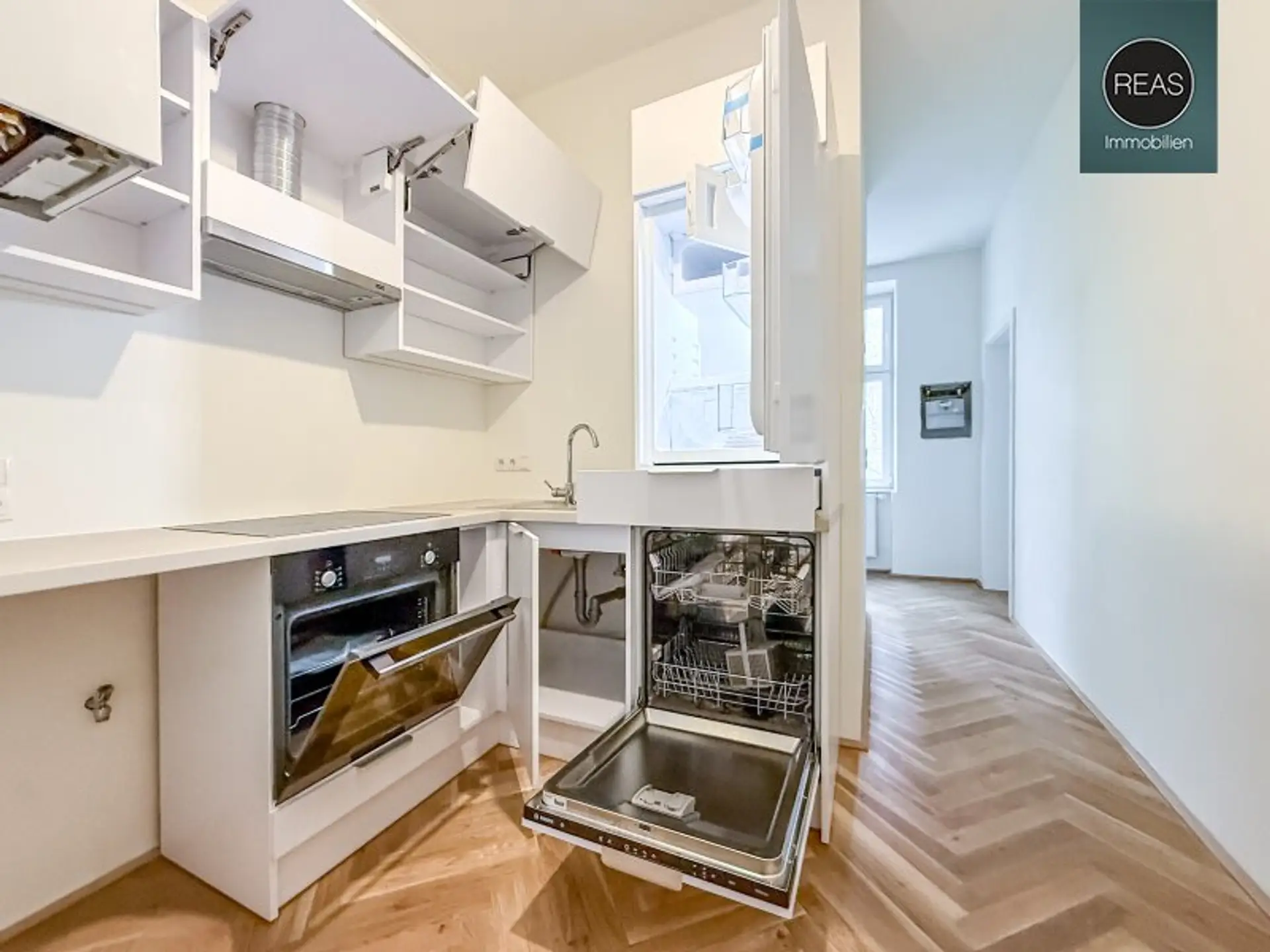 Zur hochwertigen Ausstattung gehören: Echtholz-Parkettböden, Einbauküche mit allen Geräten, Thermo-Fenster, uvm.