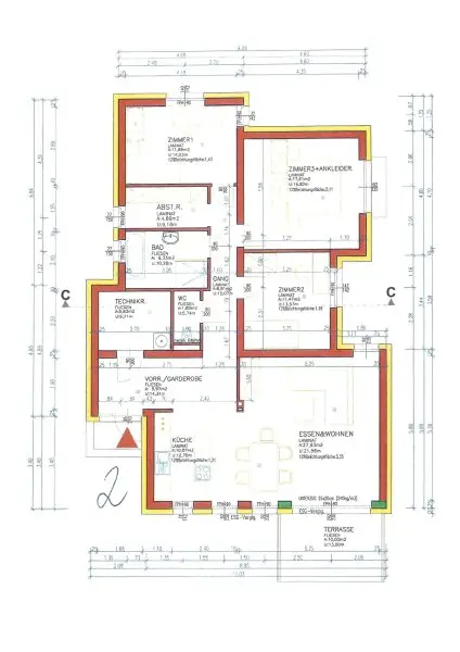 Sie betreten Ihr Haus durch ein geräumiges Vorzimmer, in dem ausreichend Platz für eine Garderobe ist. Die Toilette befindet sich praktischerweise neben dem Eingangsbereich. Ein Technikraum für die Heizung ist ebenfalls untergebracht. Zur überdachten Terrasse mit dem wunderbaren Blick in den Garten gelangen Sie durch das großzügige Wohnzimmer mit der offenen Küche. Durch die zahlreichen Fenster und Terrassentüren kommt ausreichend Tageslicht in Ihr neues Zuhause.